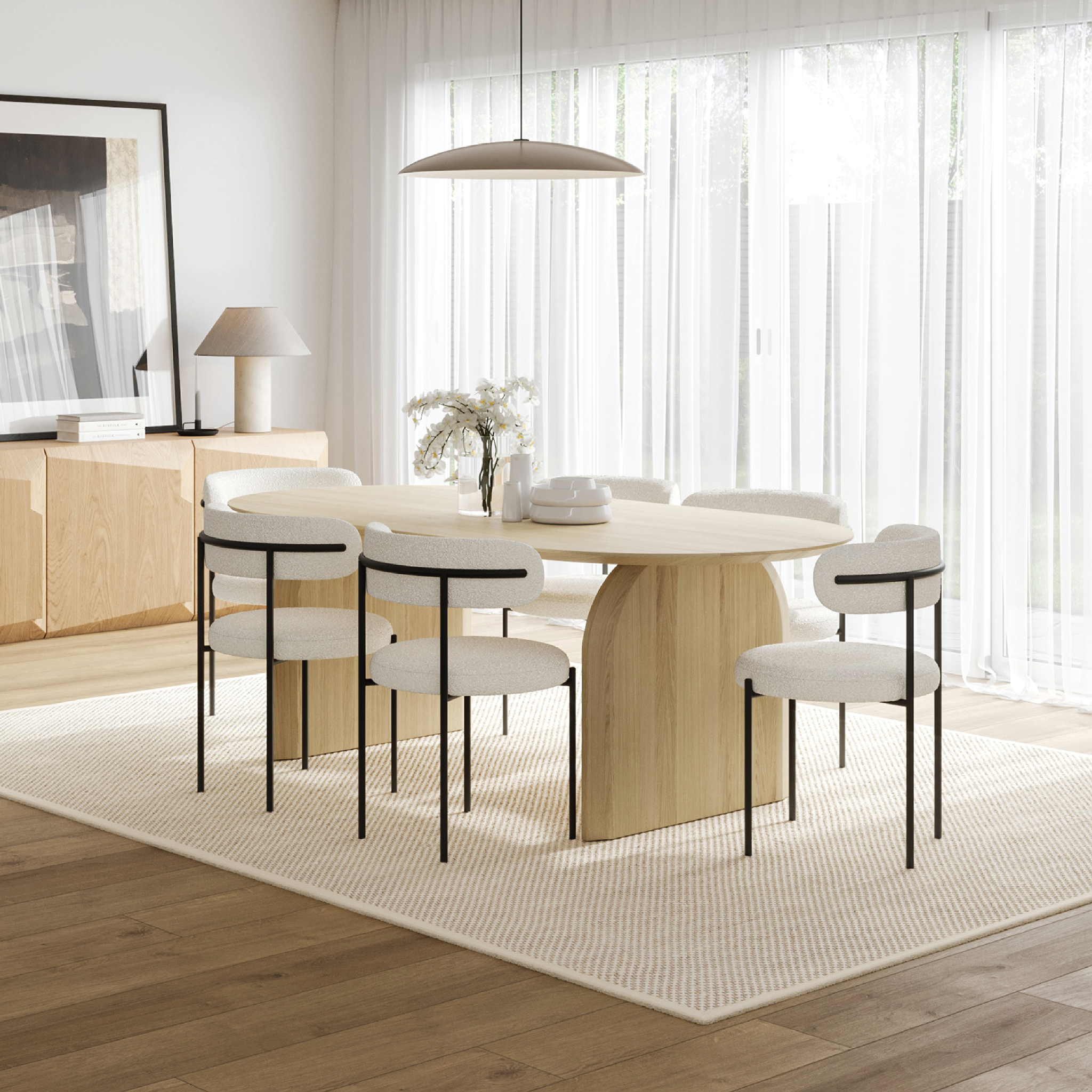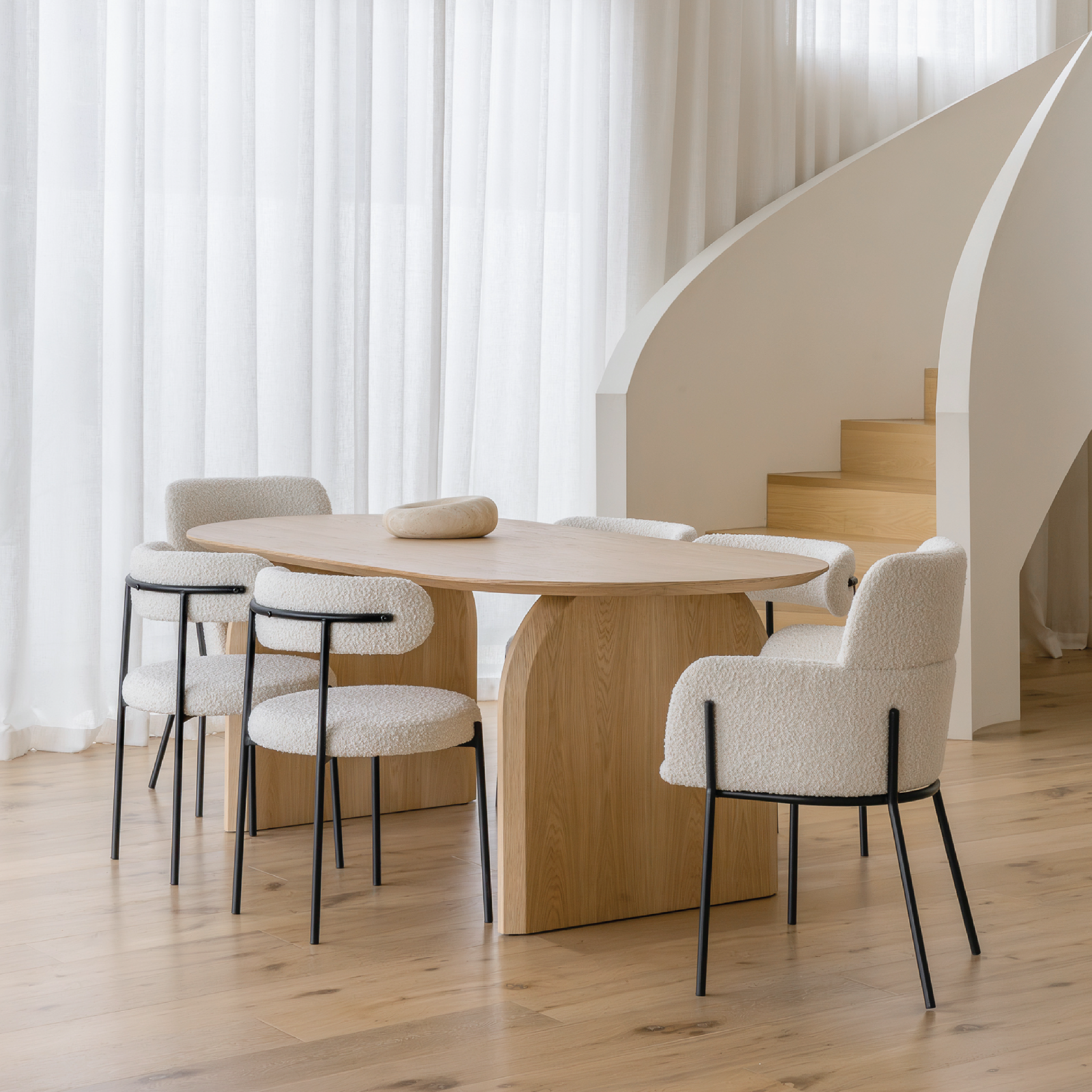 Bàn ăn Arco Oval - thiết kế thanh thoát với mặt bàn oval và chân cong mềm mại, mang lại vẻ sang trọng, tinh tế cho phòng ăn. Gỗ tần bì cao cấp bền đẹp theo thời gian, dễ dàng phối với nhiều phong cách nội thất. Kích thước rộng rãi, hoàn hảo cho những bữa ăn quây quần đầy ấm áp và tiện nghi.