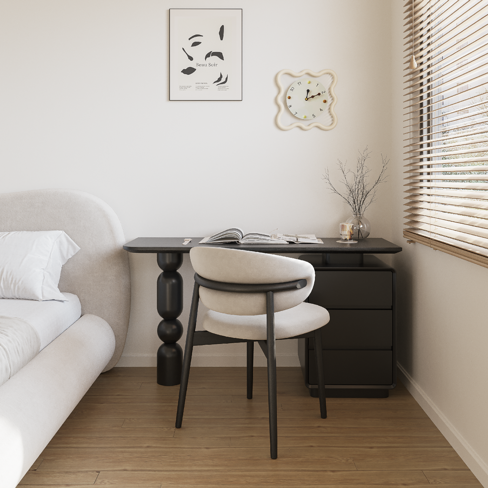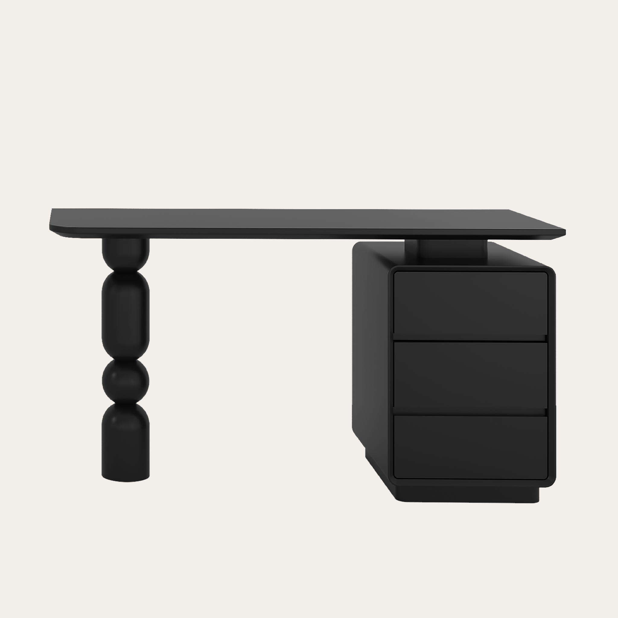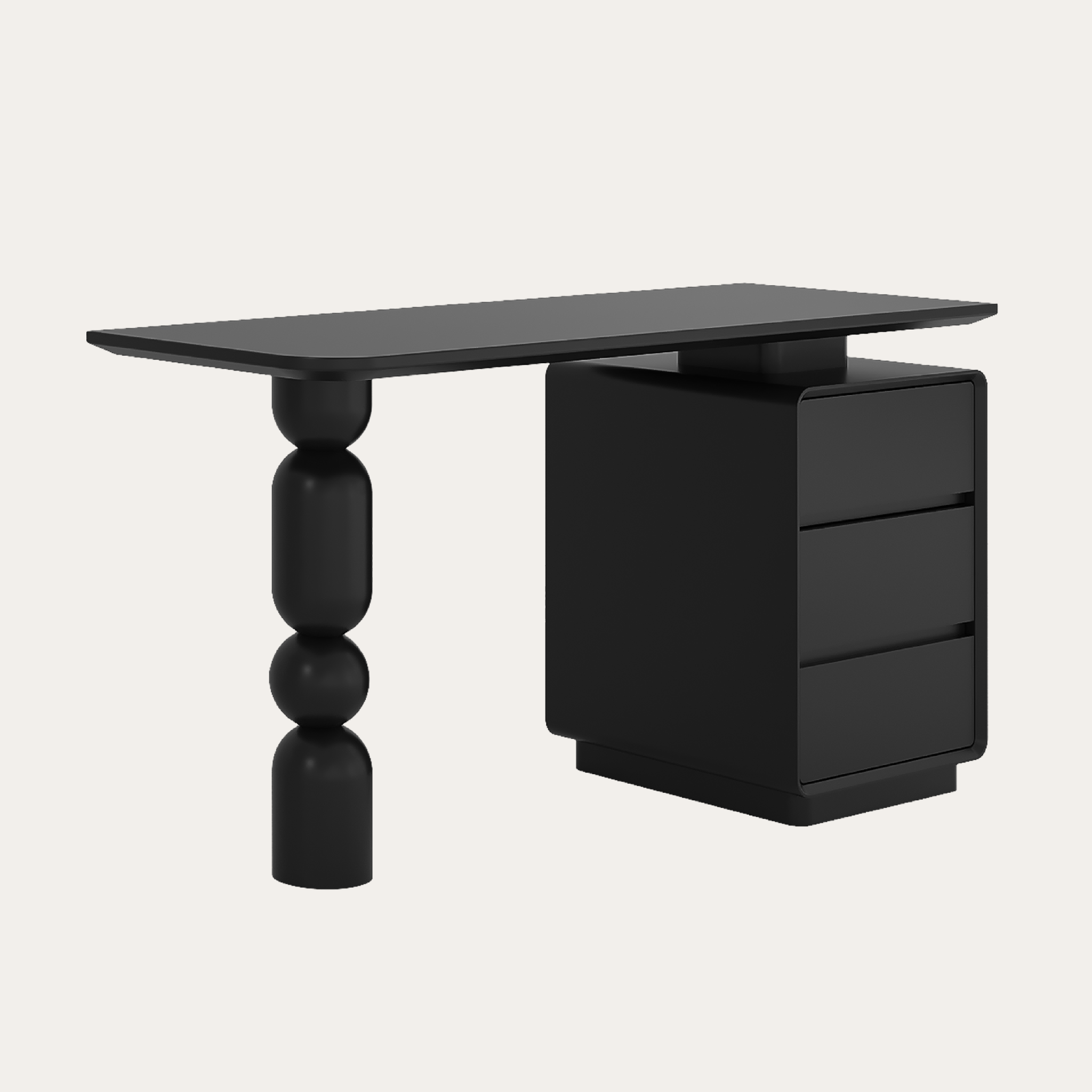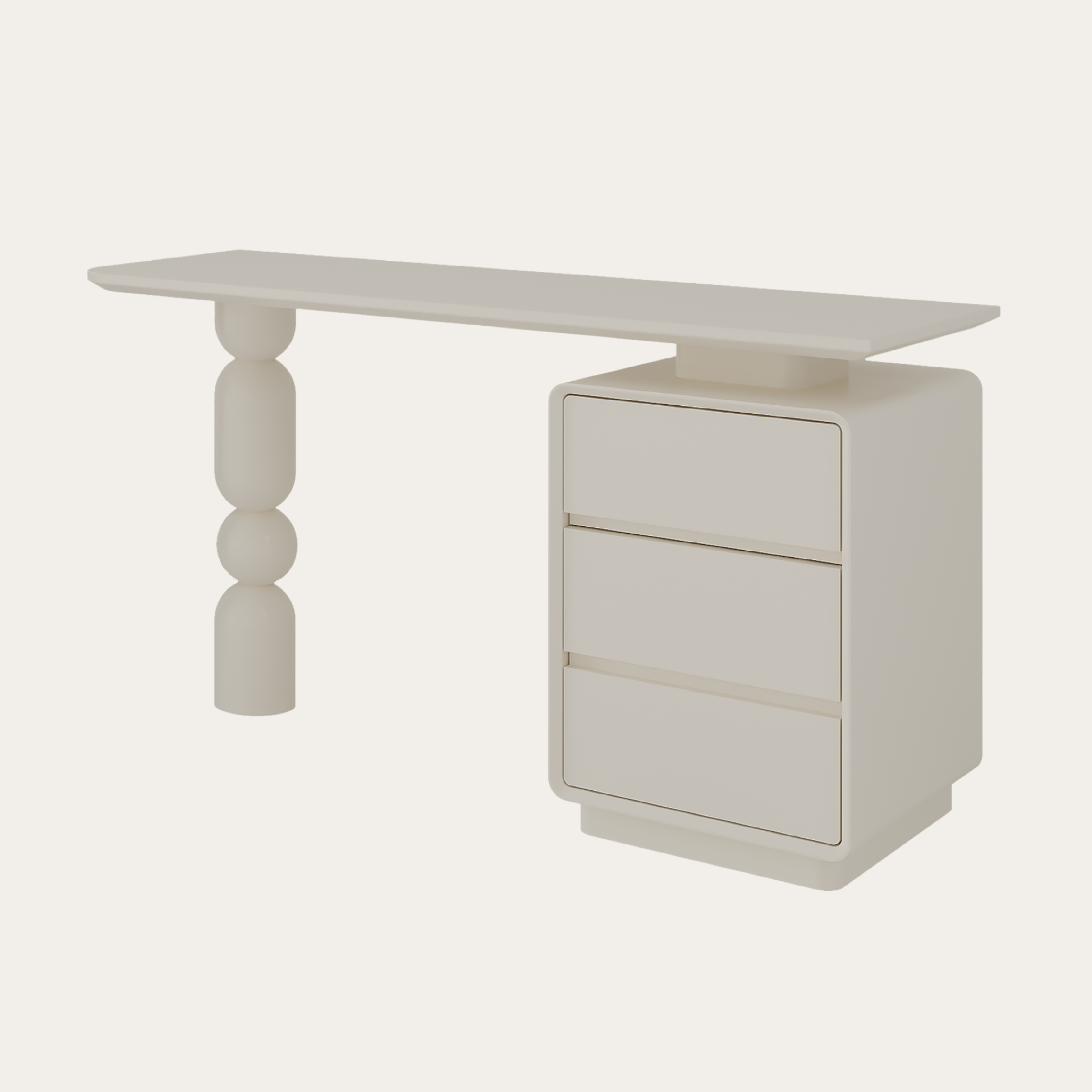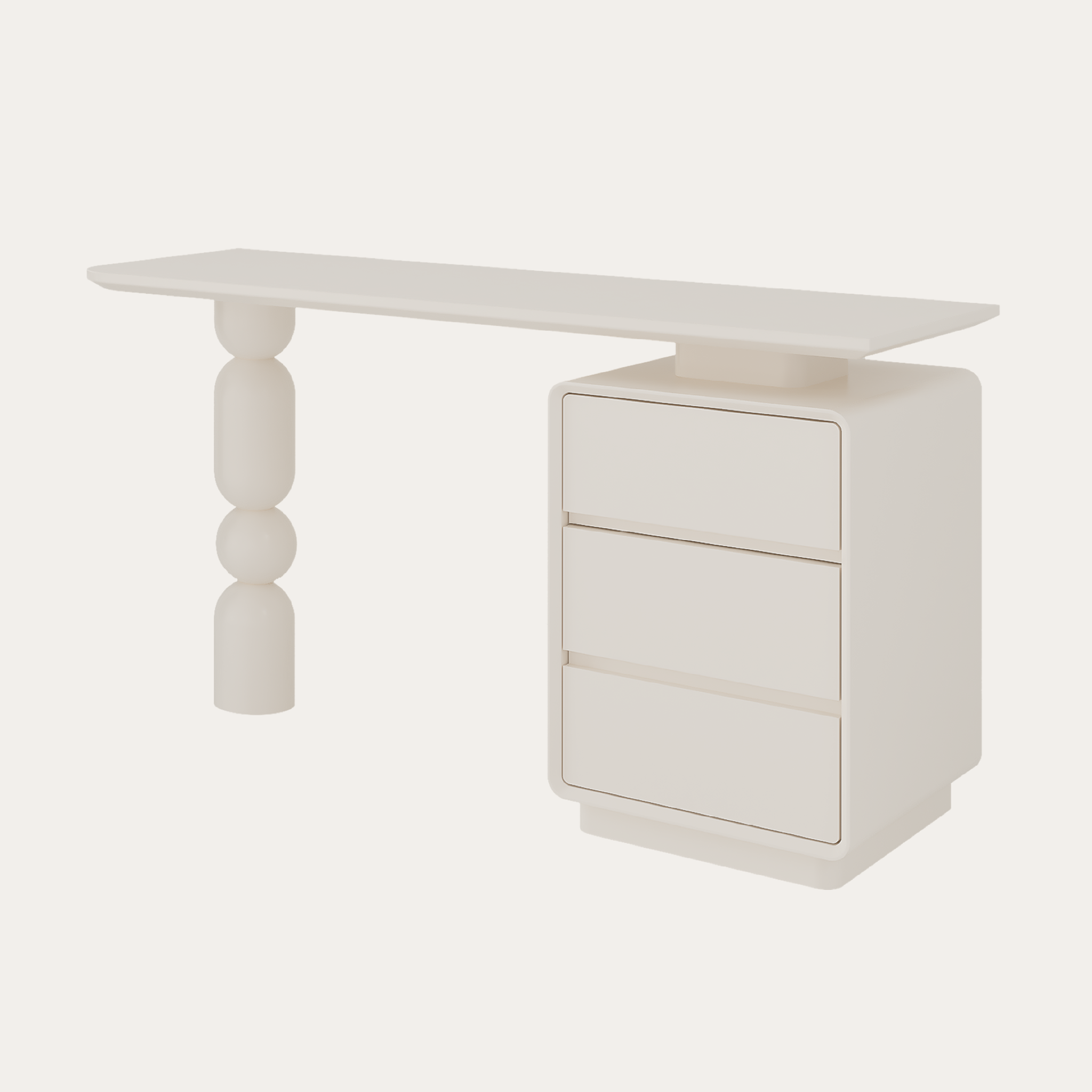 Bàn làm việc Lolli tạo điểm nhấn nghệ thuật với sự kết hợp giữa hộc tủ vuông vắn và chân bàn hình cầu độc đáo. Tông màu trung tính giúp bàn dễ hòa hợp nhiều không gian mà vẫn giữ nét riêng. Ba ngăn kéo sâu hỗ trợ lưu trữ gọn gàng, mang đến một góc làm việc thẩm mỹ và tràn đầy cảm hứng mỗi ngày