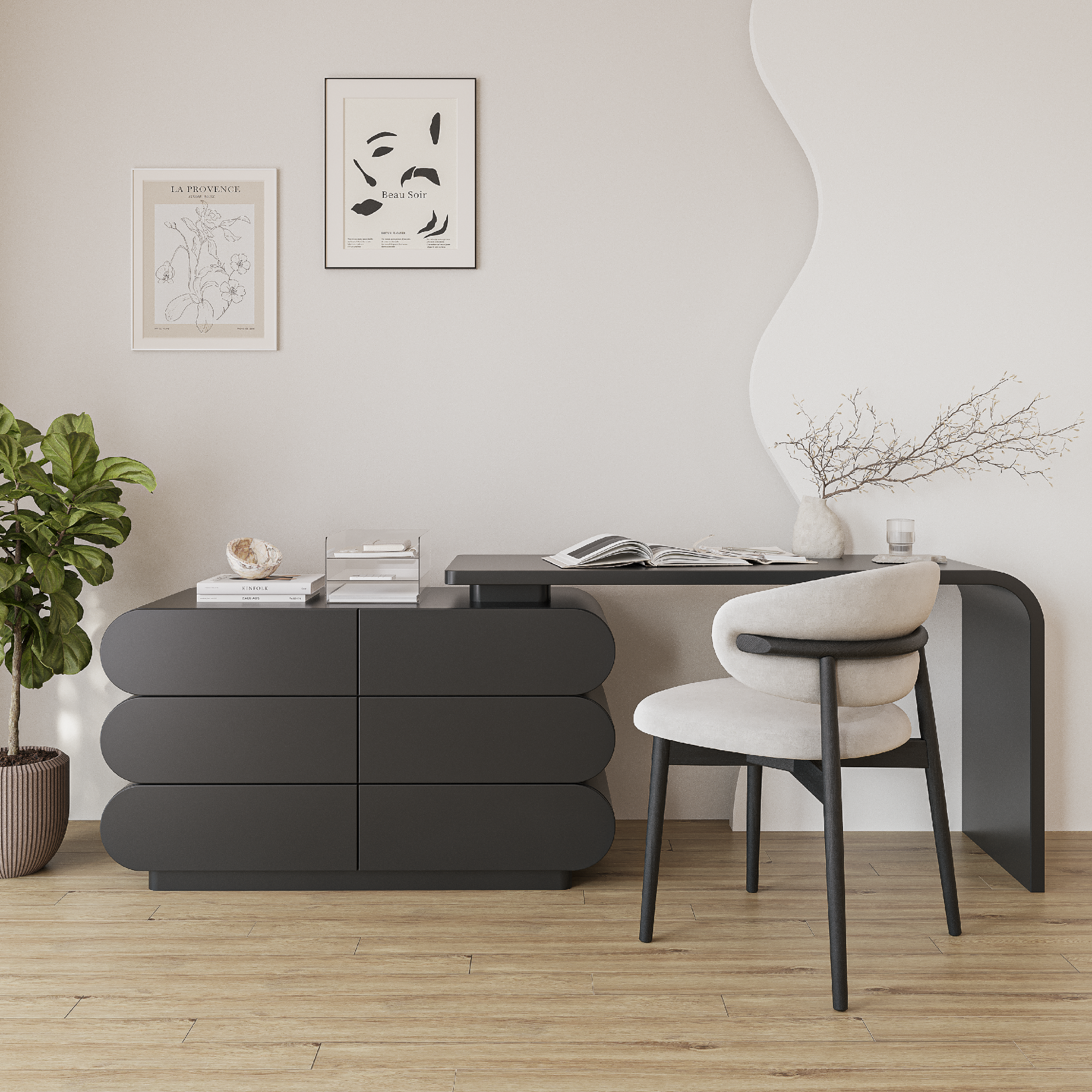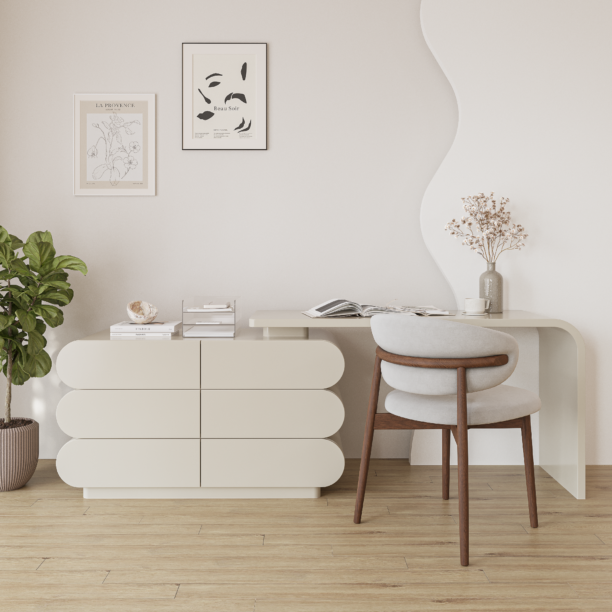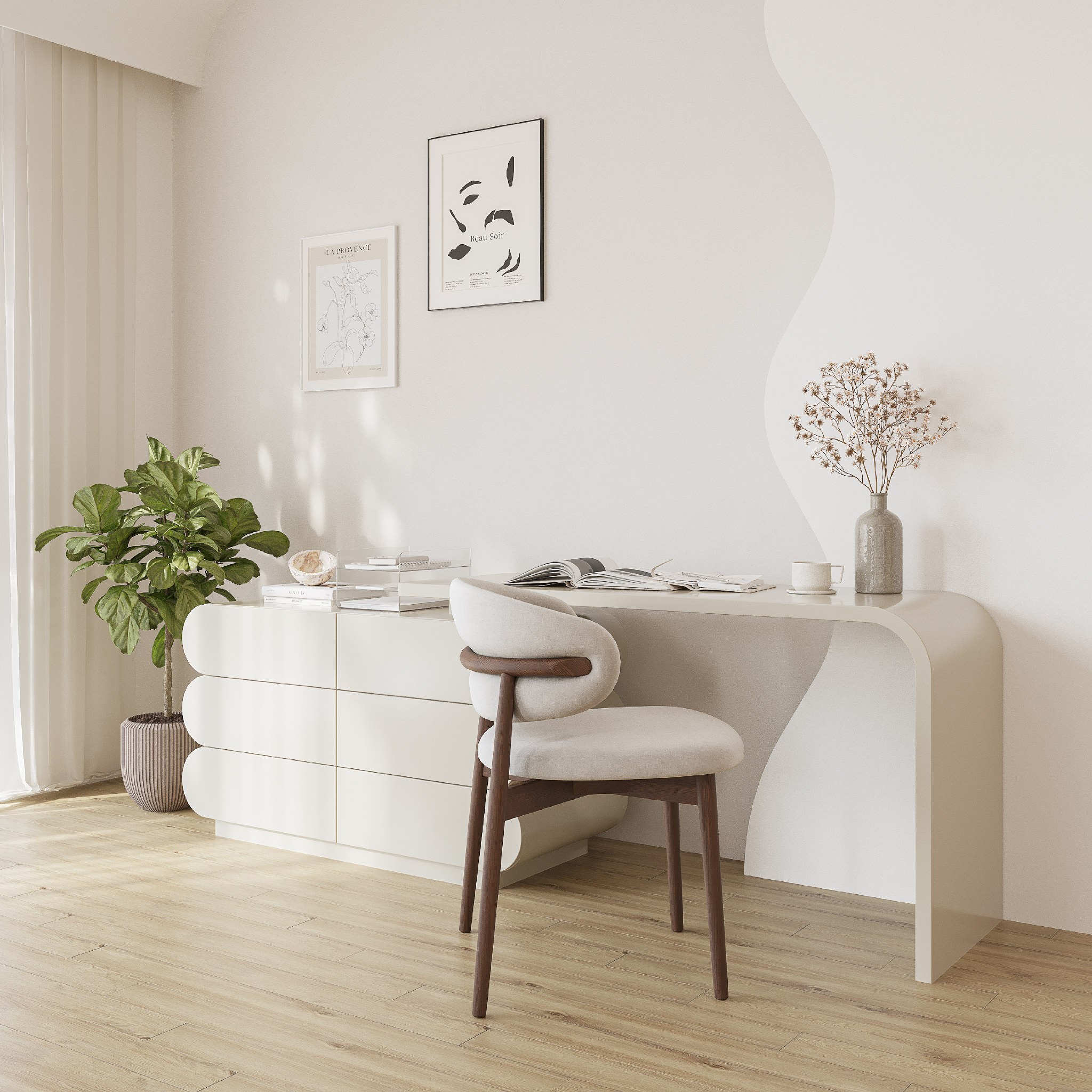 Bàn làm việc Vista nổi bật với dáng chữ U liền mạch cùng phần thân bo tròn mềm mại, tạo cảm giác nhẹ nhàng và tinh giản cho không gian. Gam màu trung tính giúp bàn dễ dàng hòa hợp nhiều phong cách nội thất. Thiết kế tối giản nhưng đầy tinh tế, Vista mang đến một góc làm việc thoáng đãng và tràn cảm hứng mỗi ngày.