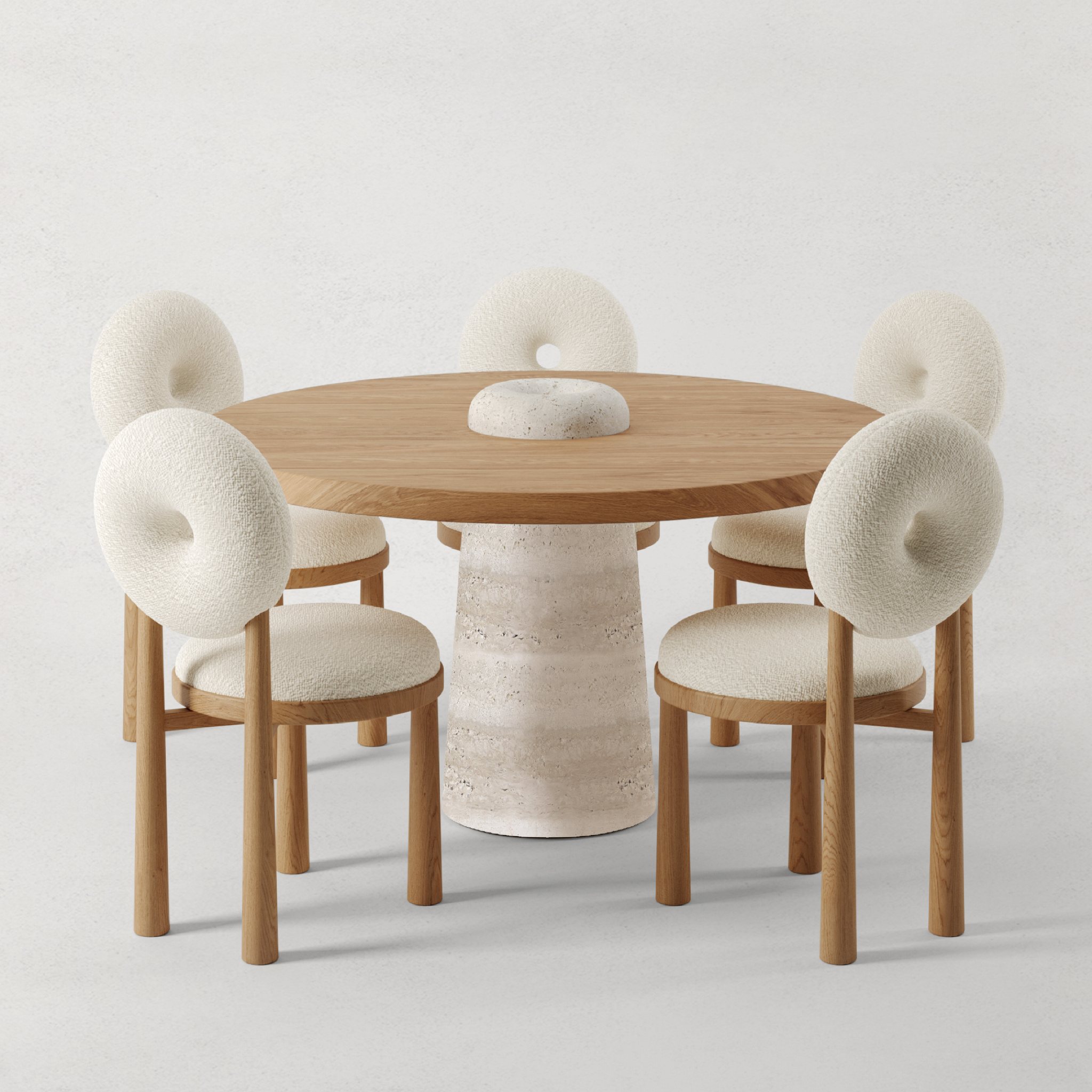 Ghế ăn Donut – độc đáo sáng tạo, biến mỗi bữa ăn thành trải nghiệm đầy cảm hứng. Đệm mousse mềm mại kết hợp tựa lưng tròn phá cách và khung gỗ ASH tự nhiên tạo điểm nhấn trẻ trung, êm ái cho từng phút giây ngồi xuống bàn.