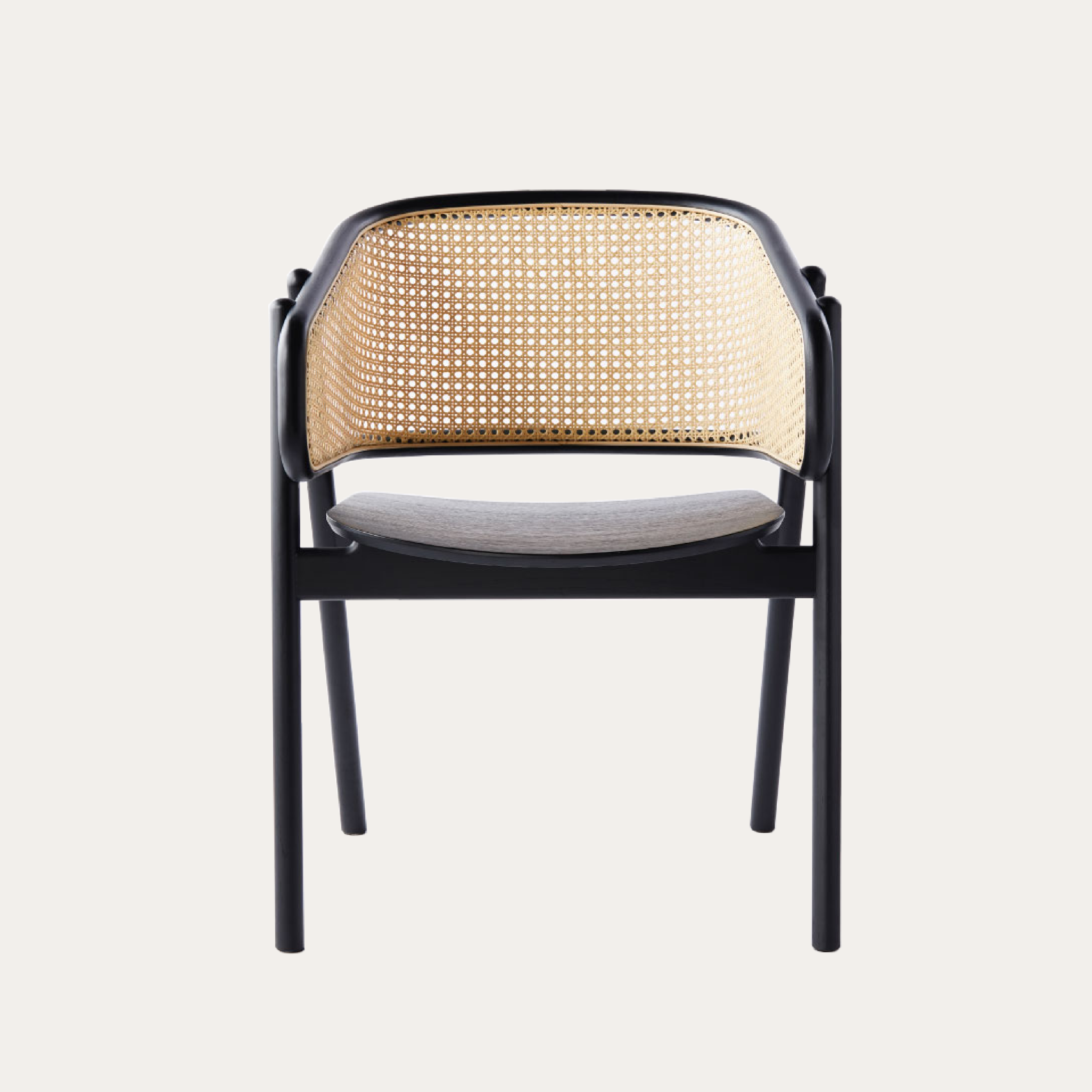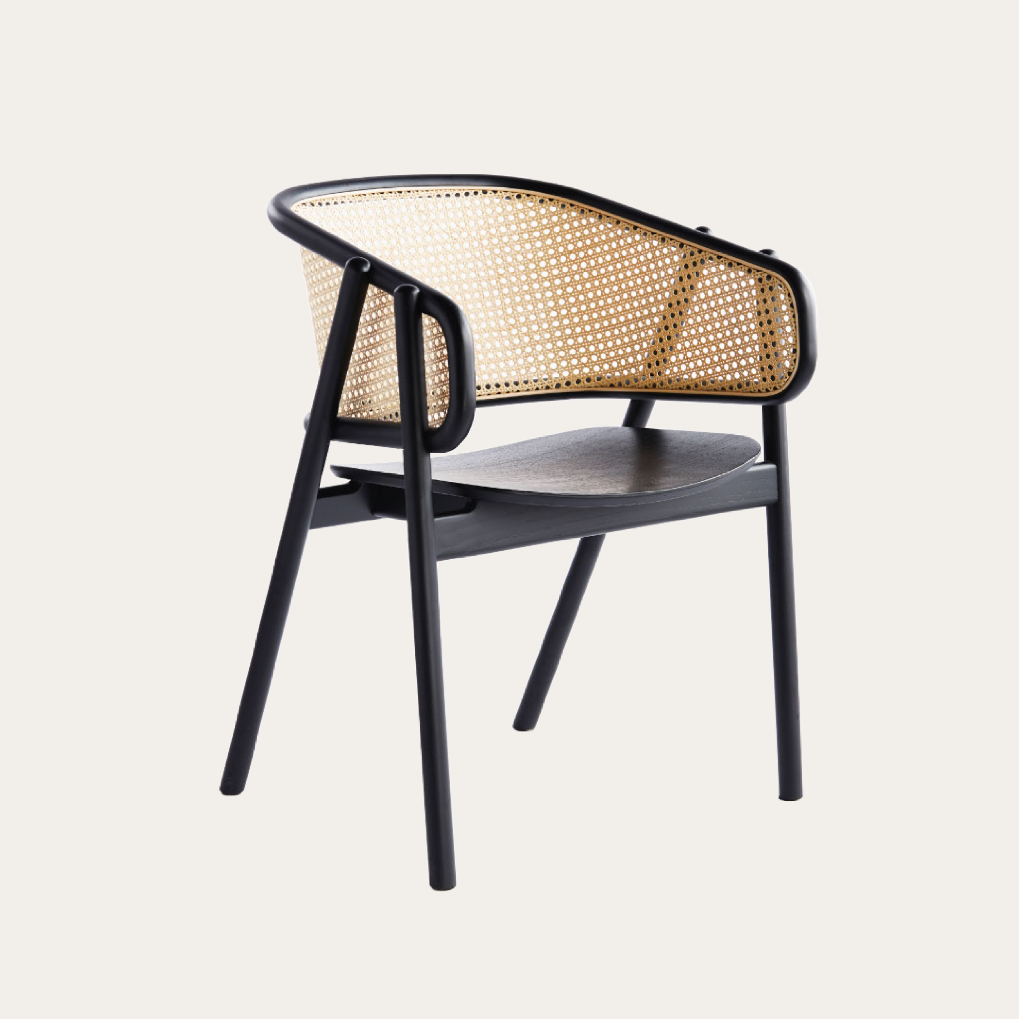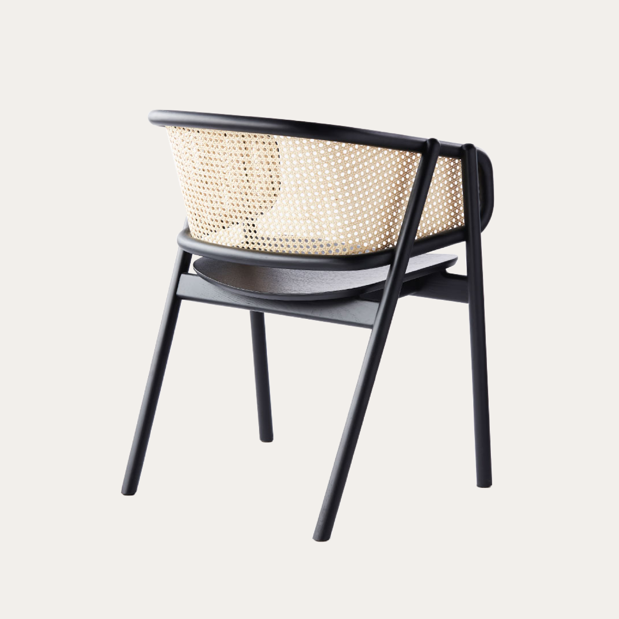 Ghế Yumika – điểm chạm độc bản giữa nét hiện đại và chất tự nhiên, nổi bật với thiết kế uốn cong mới lạ từ khung gỗ Ash phối đan mây thủ công. Tựa lưng liền tay nhẹ nhàng ôm trọn dáng ngồi, chân ghế thanh thoát cùng tỷ lệ cân đối, đem đến cảm giác thư thái suốt bữa ăn.