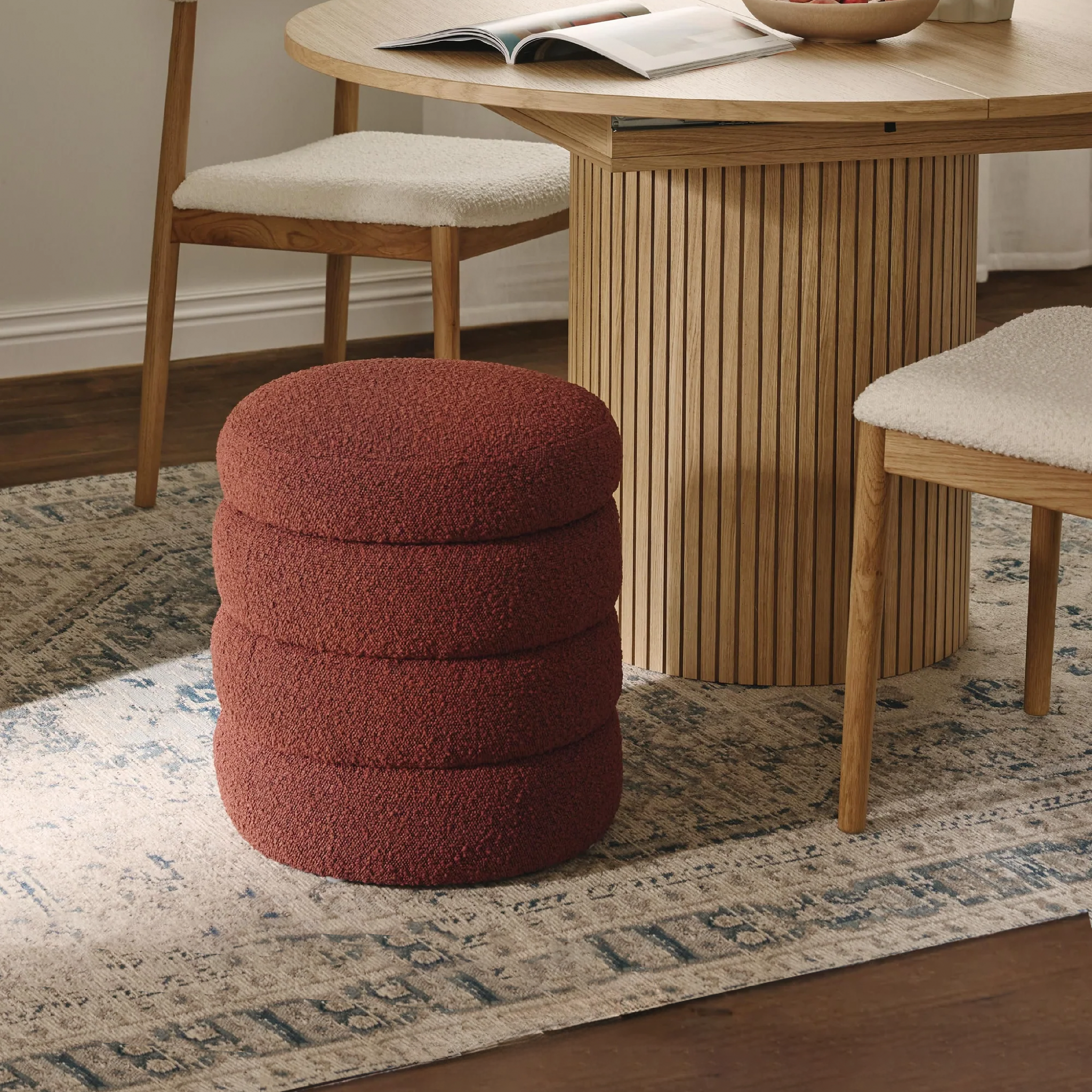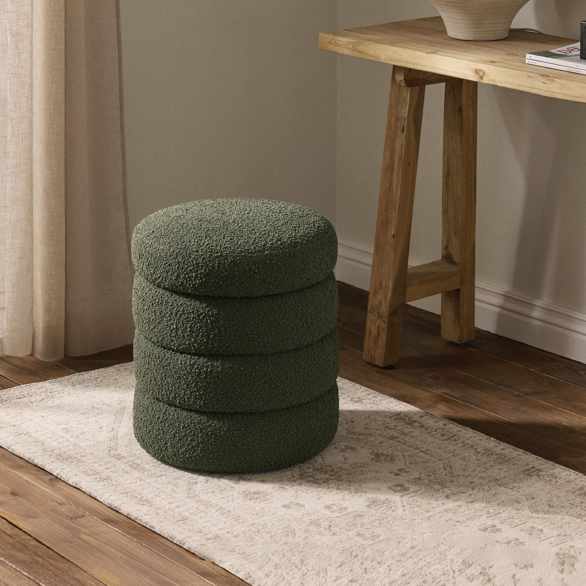 Ghế đôn Alto – dáng tròn khỏe khoắn kết hợp các tầng lớp mềm mại mang đến cảm giác êm ái và cân đối. Vải polyester tông trung tính tạo nét tối giản, giúp không gian sống thêm tươi sáng, hiện đại. Dễ phối hợp với nhiều phong cách nội thất, Alto là điểm nhấn tinh tế cho góc nhỏ thư giãn đầy năng lượng và cảm hứng.