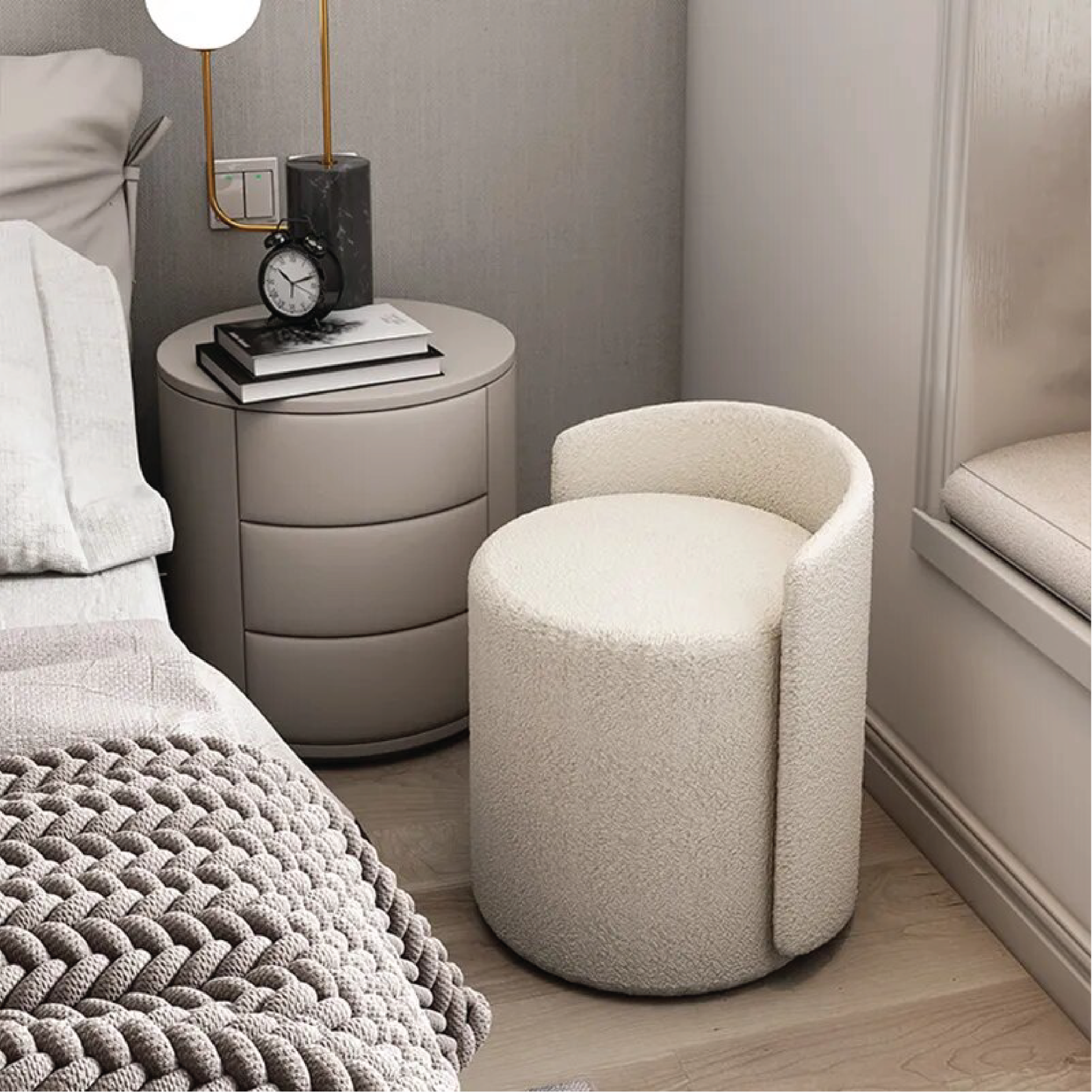 Ghế đôn Rota – vòng ôm dịu dàng cho những phút giây thư giãn. Thiết kế bo tròn liền mạch, sắc trắng thanh lịch cùng vải polyester mềm mại mang đến cảm giác êm ái, nâng niu từng chuyển động. Lưng tựa bán nguyệt ôm trọn cơ thể, dễ dàng hòa hợp mọi phong cách nội thất – từ hiện đại tối giản đến không gian sáng tạo cá nhân.