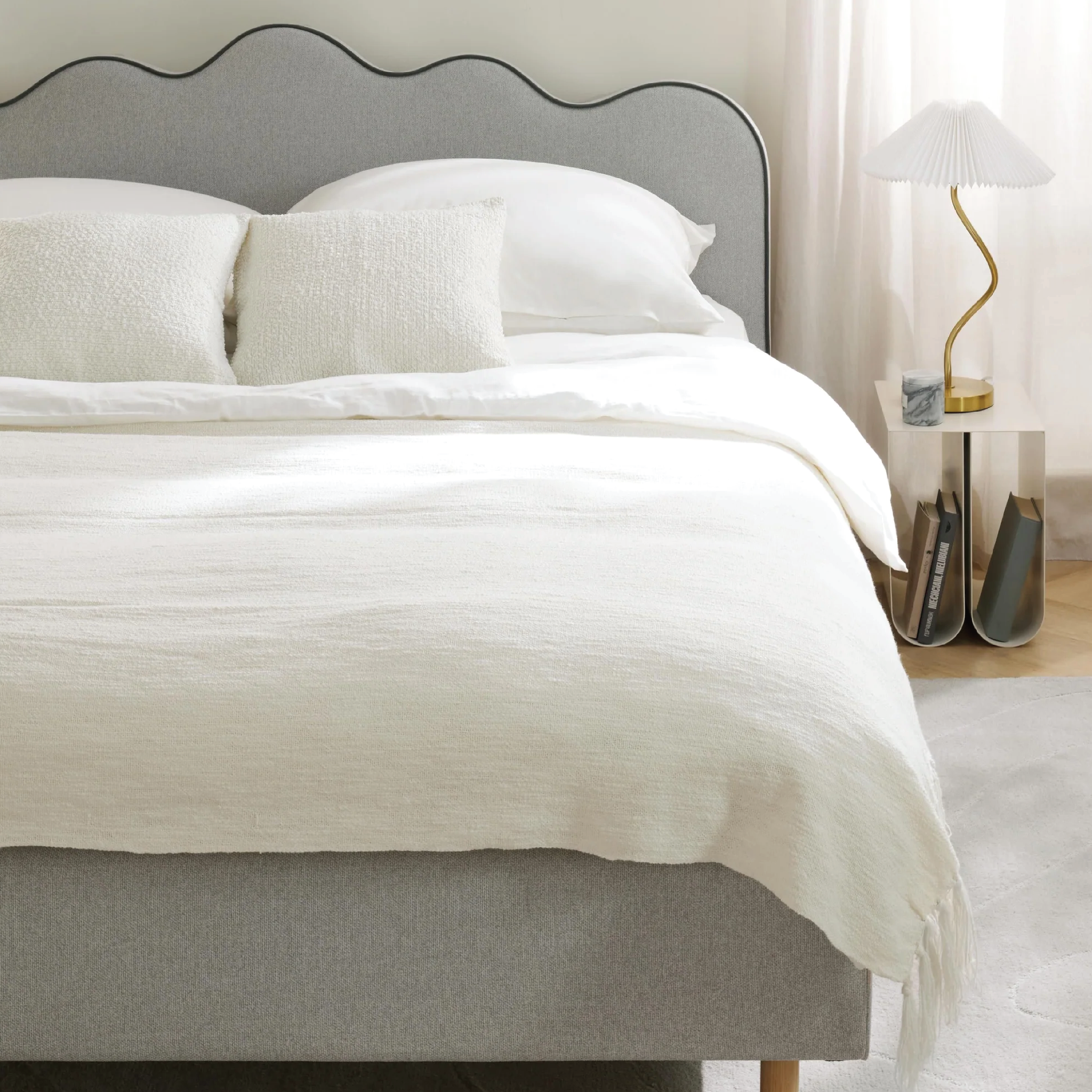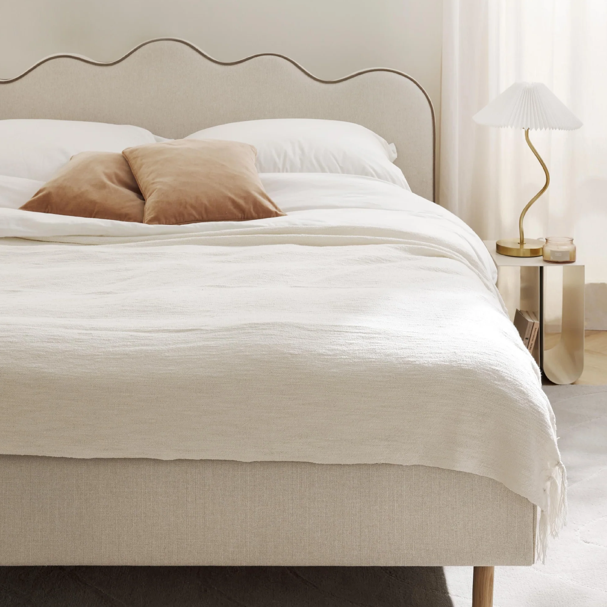 Giường bọc vải Envy - nổi bật với thiết kế đầu giường lượn sóng mềm mại, tạo điểm nhấn nghệ thuật đầy cuốn hút cho không gian nghỉ ngơi. Lớp vải bọc cao cấp cùng gam màu trung tính mang đến cảm giác êm ái, thanh lịch và dễ dàng hòa hợp với nhiều phong cách nội thất – từ cổ điển tinh tế đến hiện đại sang trọng.