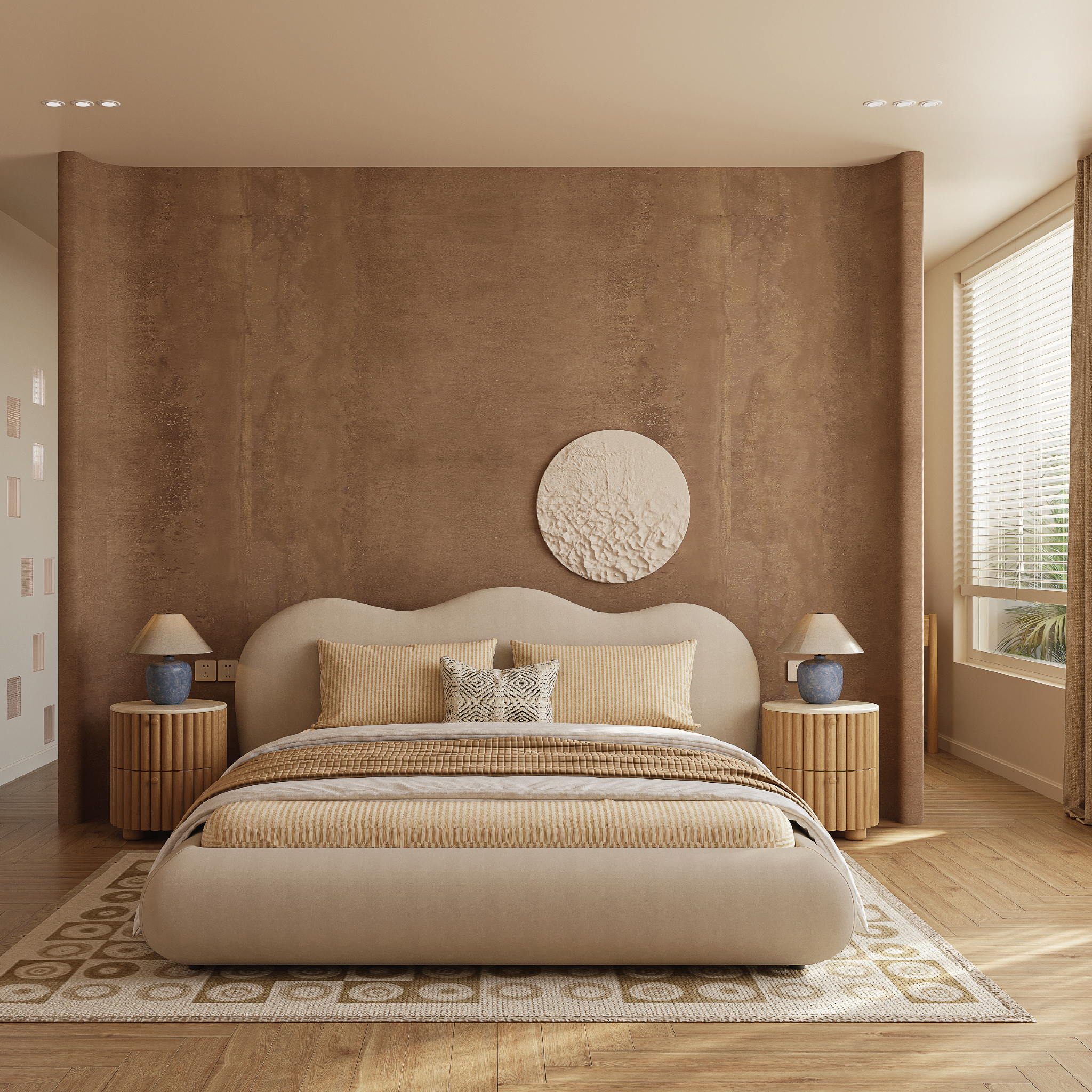Giường bọc vải Calmo toát lên vẻ thanh lịch và thư giãn với thiết kế uốn cong mềm mại, tạo cảm giác thoải mái, dễ chịu. Lớp vải bọc mịn màng cùng gam màu trung tính mang đến nét sang trọng tinh tế cho không gian phòng ngủ. Chân giường thấp, thiết kế gọn gàng giúp Calmo dễ dàng hòa hợp với mọi phong cách nội thất hiện đại.