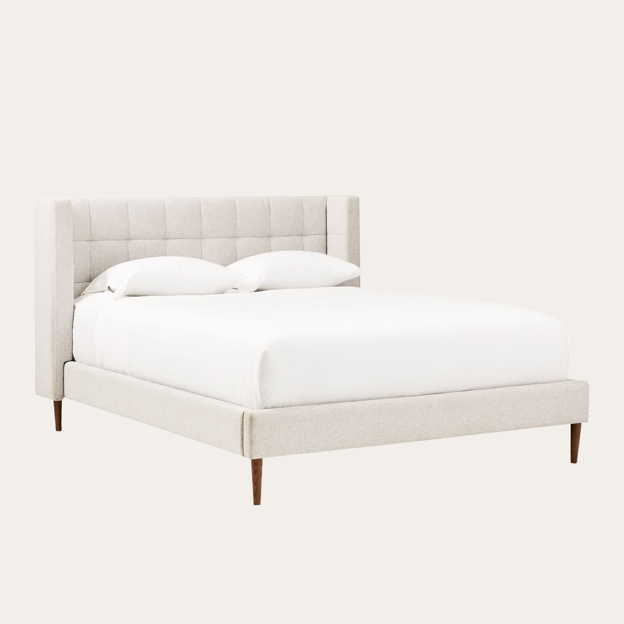 Giường bọc vải Shelter gây ấn tượng với thiết kế vuông vắn, tinh tế, mang đến vẻ đẹp hiện đại và thanh lịch. Đầu giường gấp khúc độc đáo tạo điểm nhấn nghệ thuật, hài hòa cùng lớp vải bọc có thể tùy chỉnh êm ái. Chân gỗ tự nhiên vững chãi kết hợp cùng tông màu trung tính giúp giường Shelter dễ dàng hòa hợp trong mọi phong cách nội thất.