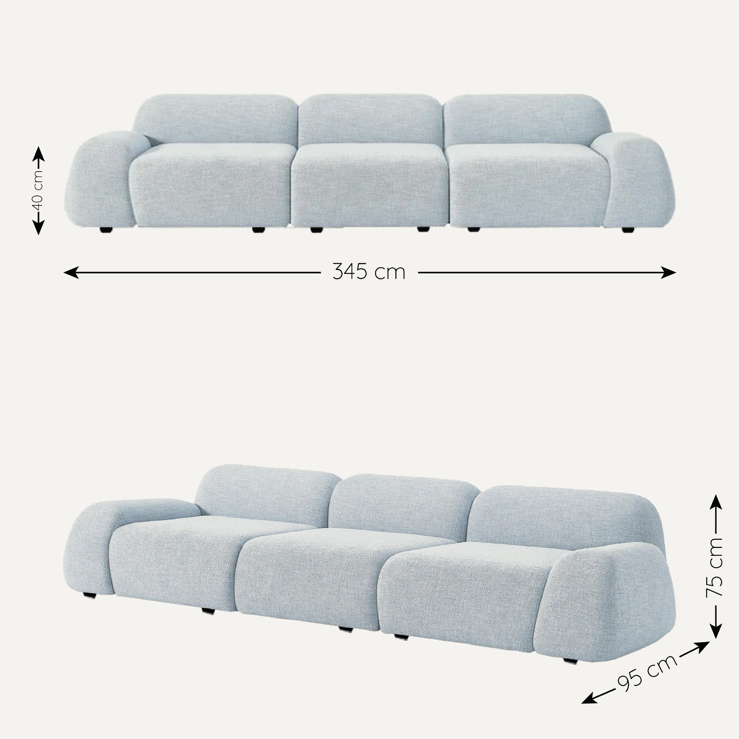 Sofa băng Cloud 3 modular - điểm nhấn tinh tế cho phòng khách hiện đại với thiết kế khối cân đối và đường cong bo tròn liền mạch, vừa vững chãi vừa mềm mại. Chất liệu vải cao cấp mang lại cảm giác êm ái, thân thiện với làn da, giúp không gian thêm sáng và trẻ trung. Tựa lưng và tay vịn rộng rãi nâng đỡ trọn vẹn cơ thể, tạo sự thoải mái tối đa. Đường nét tối giản cùng màu sắc thanh lịch biến Cloud 3 thành tâm điểm nổi bật của căn phòng.