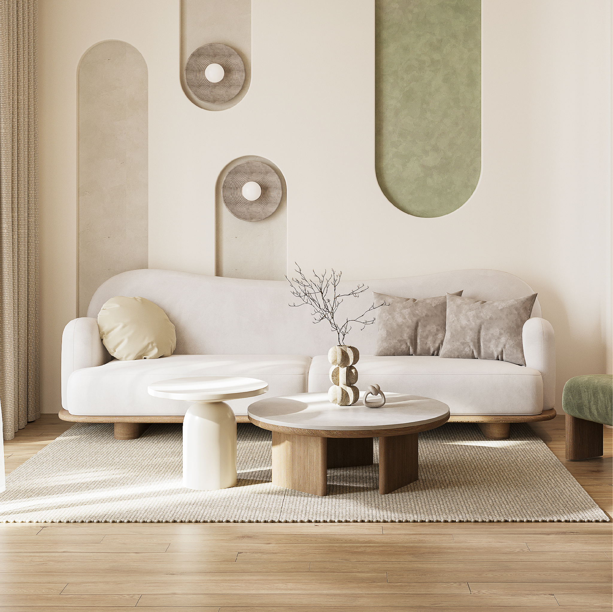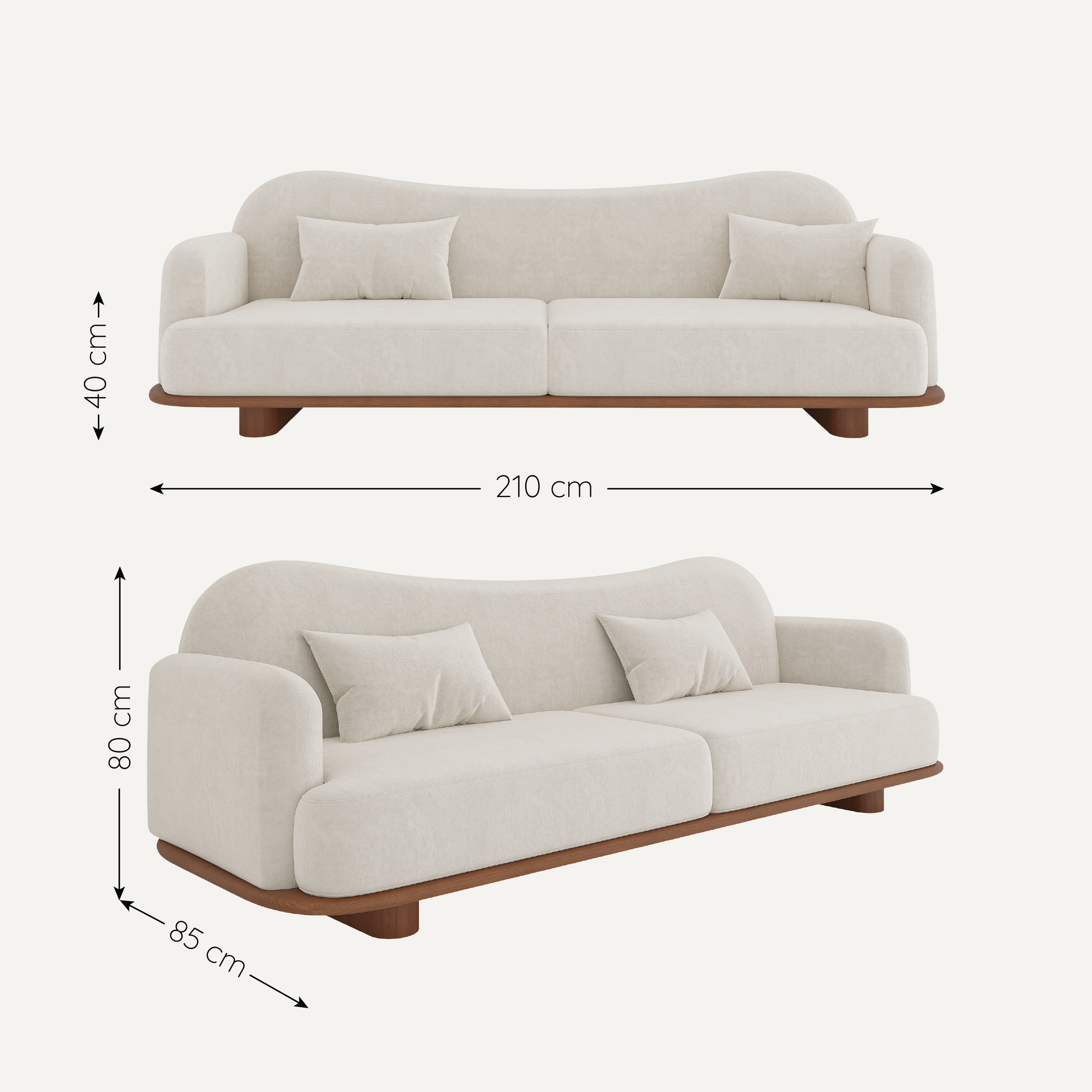 Sofa băng Sabi – thiết kế độc đáo như làn sóng mềm mại, với lưng ghế cong nhẹ ôm trọn khung, vừa nâng đỡ vừa tạo hiệu ứng thị giác sáng tạo. Đệm ngồi rộng rãi, bo cong liên tục cho cảm giác thư giãn như thả mình trên bãi cát êm dịu. Chân gỗ vững chắc, đế dày liền mạch mang lại điểm tựa ổn định. Gối tựa đa dạng, dễ tùy biến chất liệu và màu sắc, biến Sabi thành dấu ấn riêng trong không gian hiện đại.