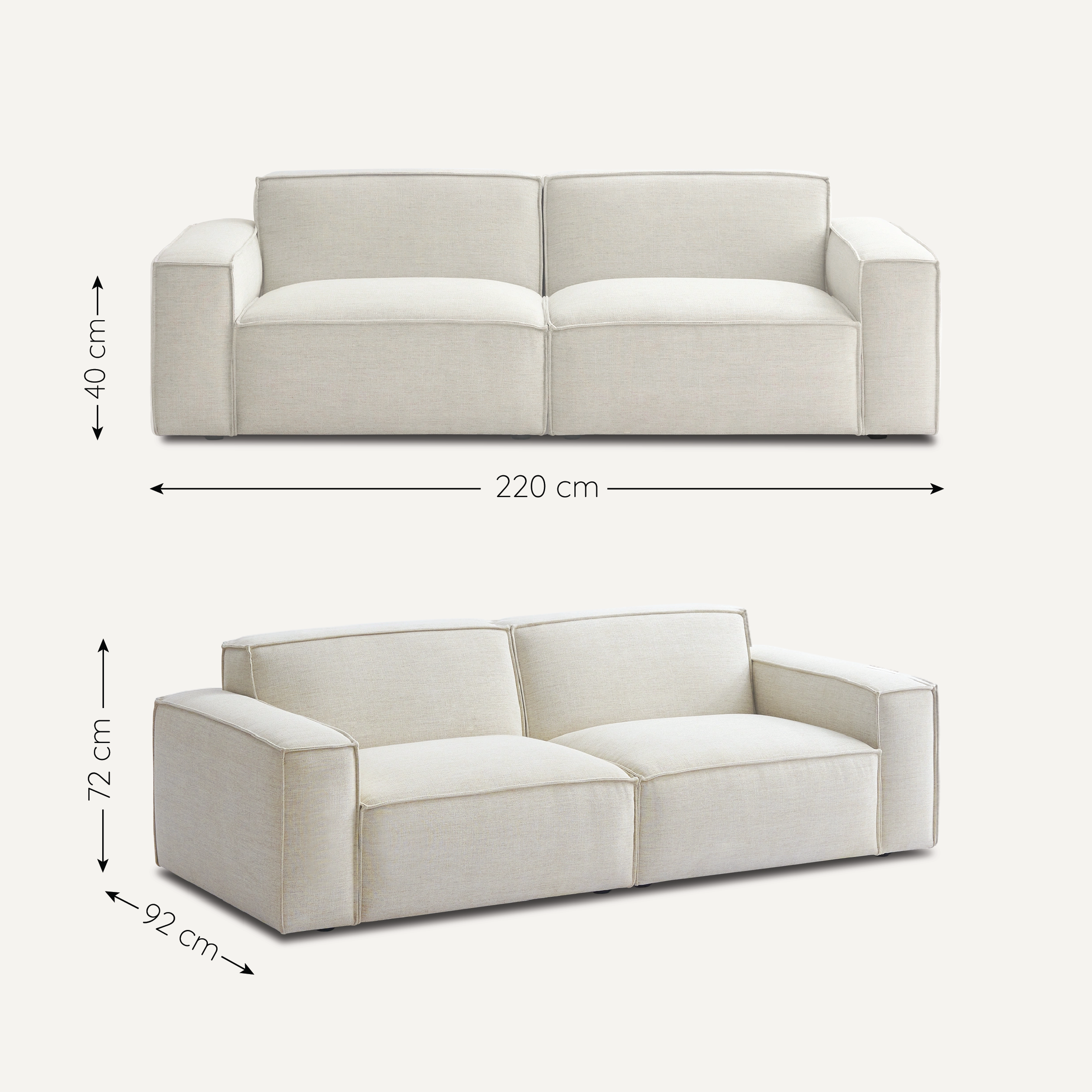Sofa băng Jona 2 modular – tối giản, khỏe khoắn với dáng vuông vức hiện đại và đệm ngồi dày êm ái, mang đến sự vững chãi trong từng phút nghỉ ngơi hay tiếp khách. Lưng và tay ghế liền mạch, bọc vải cao cấp giúp tổng thể đồng bộ, dễ dàng phối kết với nhiều phong cách nội thất. Thiết kế tinh tế nhưng cá tính, phù hợp cho ai yêu thích không gian trẻ trung, sang trọng và chuyên nghiệp.