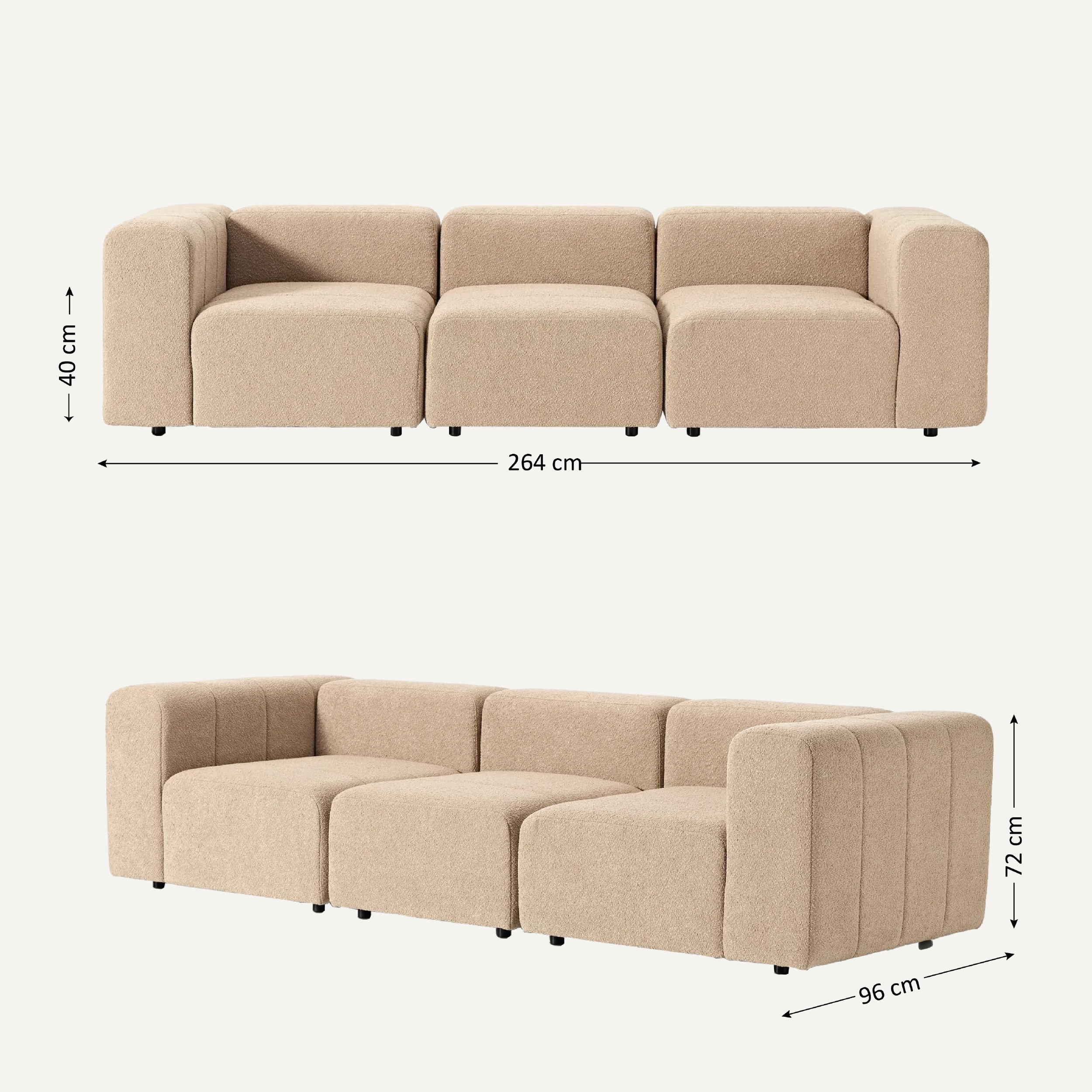 Sofa băng Lino 3 modular – phong cách tối giản với thiết kế ba khối rời, linh hoạt lắp ghép theo nhiều bố cục khác nhau. Chất vải cao cấp mang lại cảm giác mềm mại, sang trọng, đồng thời dễ phối hợp với nhiều phong cách nội thất. Đệm ngồi và tựa lưng êm ái giúp thư giãn trọn vẹn, trong khi cấu trúc module cho phép mở rộng, thay đổi vị trí, phù hợp với cả không gian nhỏ gọn lẫn phòng khách rộng rãi.