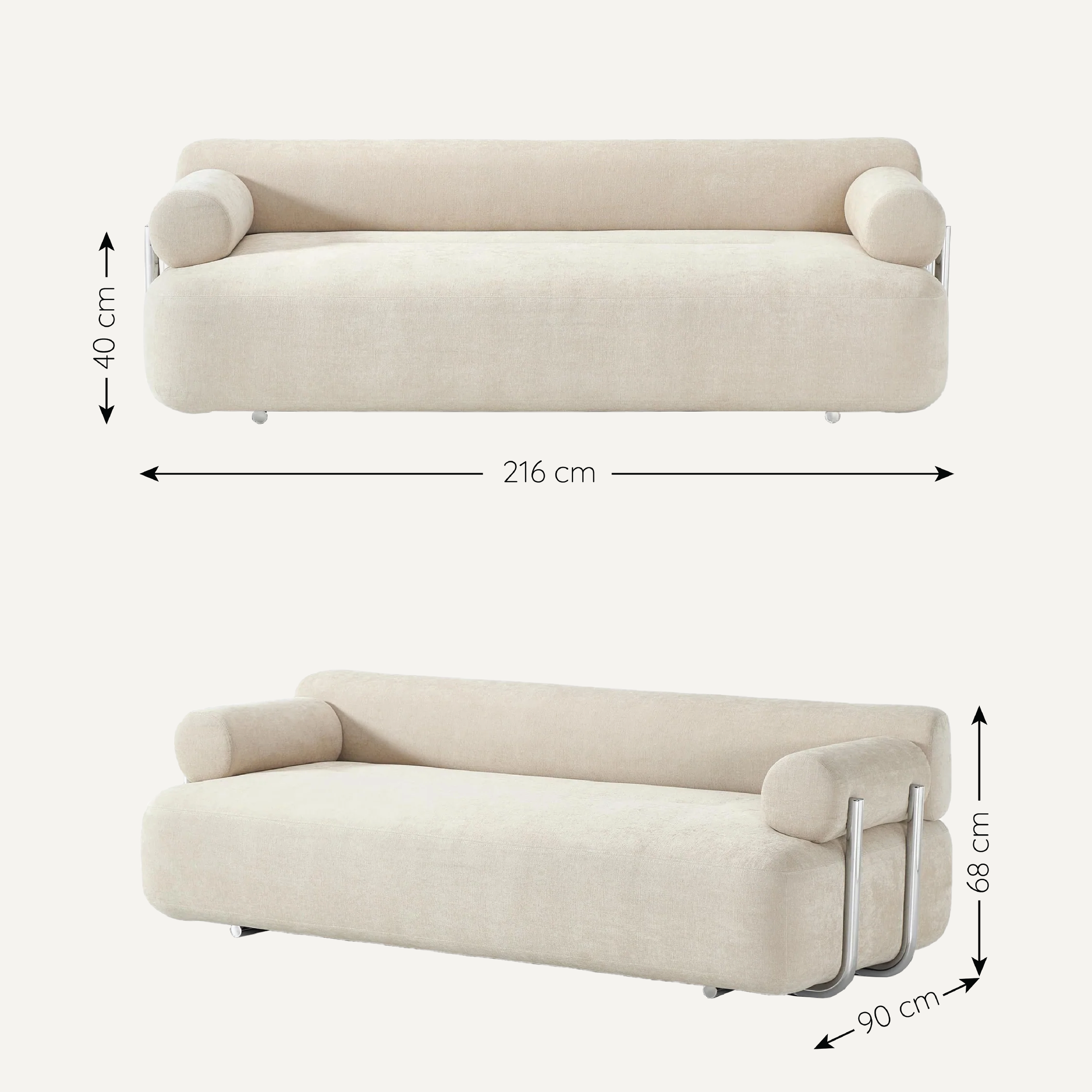 Sofa băng Stella – thiết kế hình khối nguyên bản, tinh thần tối giản, tạo hiệu ứng thị giác mạnh mẽ. Đệm ngồi dày bồng bềnh, lưng tựa dài liền mạch mang lại thư giãn tối đa. Hai gối trụ lớn ở hai đầu vừa cân bằng vừa tạo điểm nhấn nghệ thuật. Chân ghế kim loại bóng tăng độ chắc chắn và nét hiện đại. Lựa chọn lý tưởng cho phòng khách hiện đại, sang trọng và tinh tế.