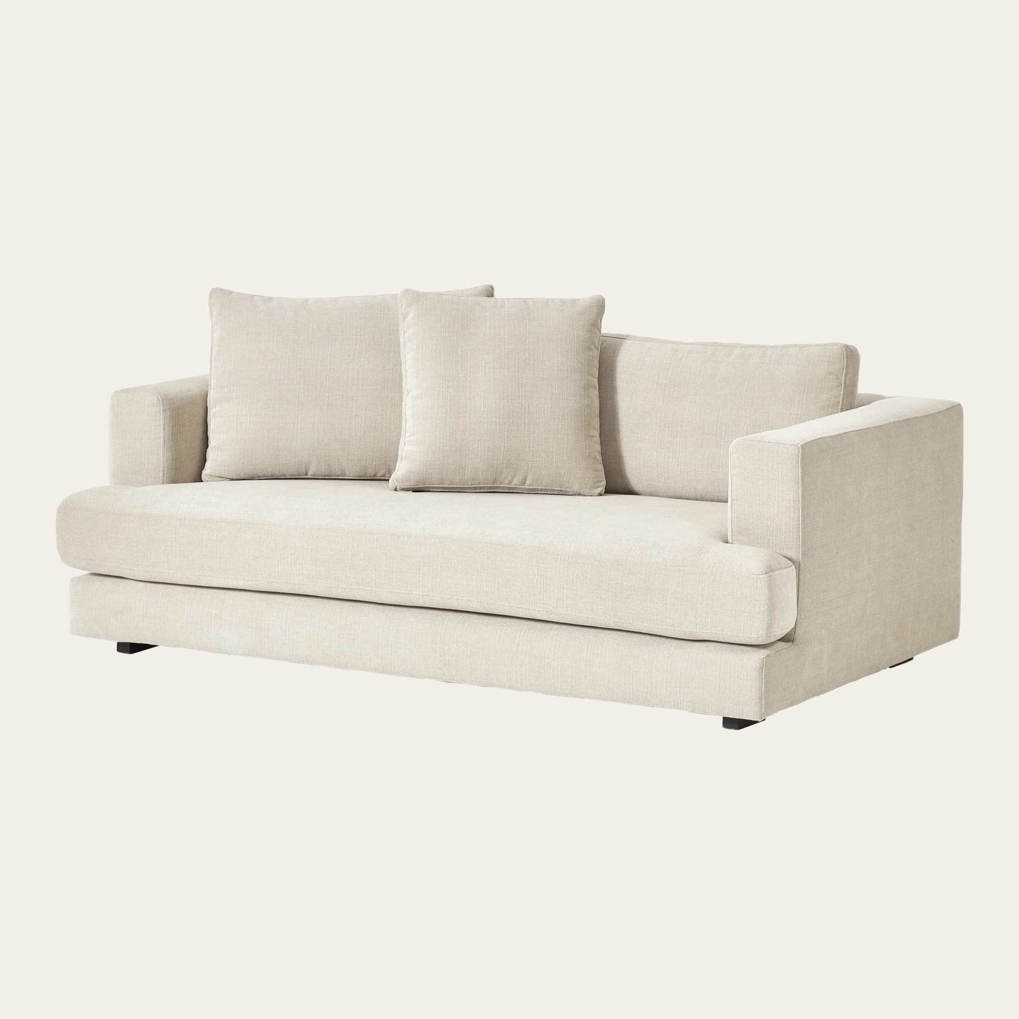 Sofa băng Tribeca 1 – đệm ngồi rộng, lún mềm mang lại cảm giác thư giãn tuyệt đối, kết hợp lưng ghế với ba gối lớn linh hoạt, dễ điều chỉnh theo mọi tư thế. Tay ghế vuông vắn, cạnh bo nhẹ tăng cảm giác ôm sát và vững chãi. Thiết kế tối giản, chiều cao vừa phải, chân thấp hài hòa cho phòng khách hoặc phòng ngủ hiện đại. Nệm và gối tháo rời tiện vệ sinh, giữ sofa luôn sạch đẹp và bền lâu.