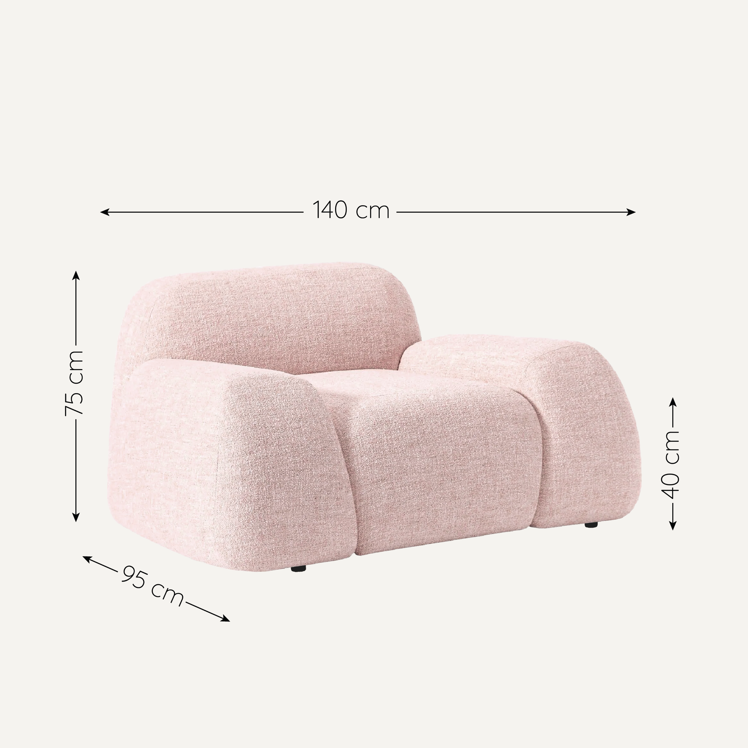 Sofa đơn Cloud – nơi cảm giác nhẹ như mây mang đến phút giây thư giãn tuyệt đối. Thiết kế bo tròn mềm mại, đệm ngồi dày êm ái ôm trọn cơ thể giúp xua tan mệt mỏi và khơi dậy sự an yên. Dáng ghế rộng rãi dễ bài trí, vệ sinh thuận tiện, luôn giữ form tươi mới – cho mỗi lần ngồi xuống là một trải nghiệm thư thái và tràn đầy năng lượng tích cực.