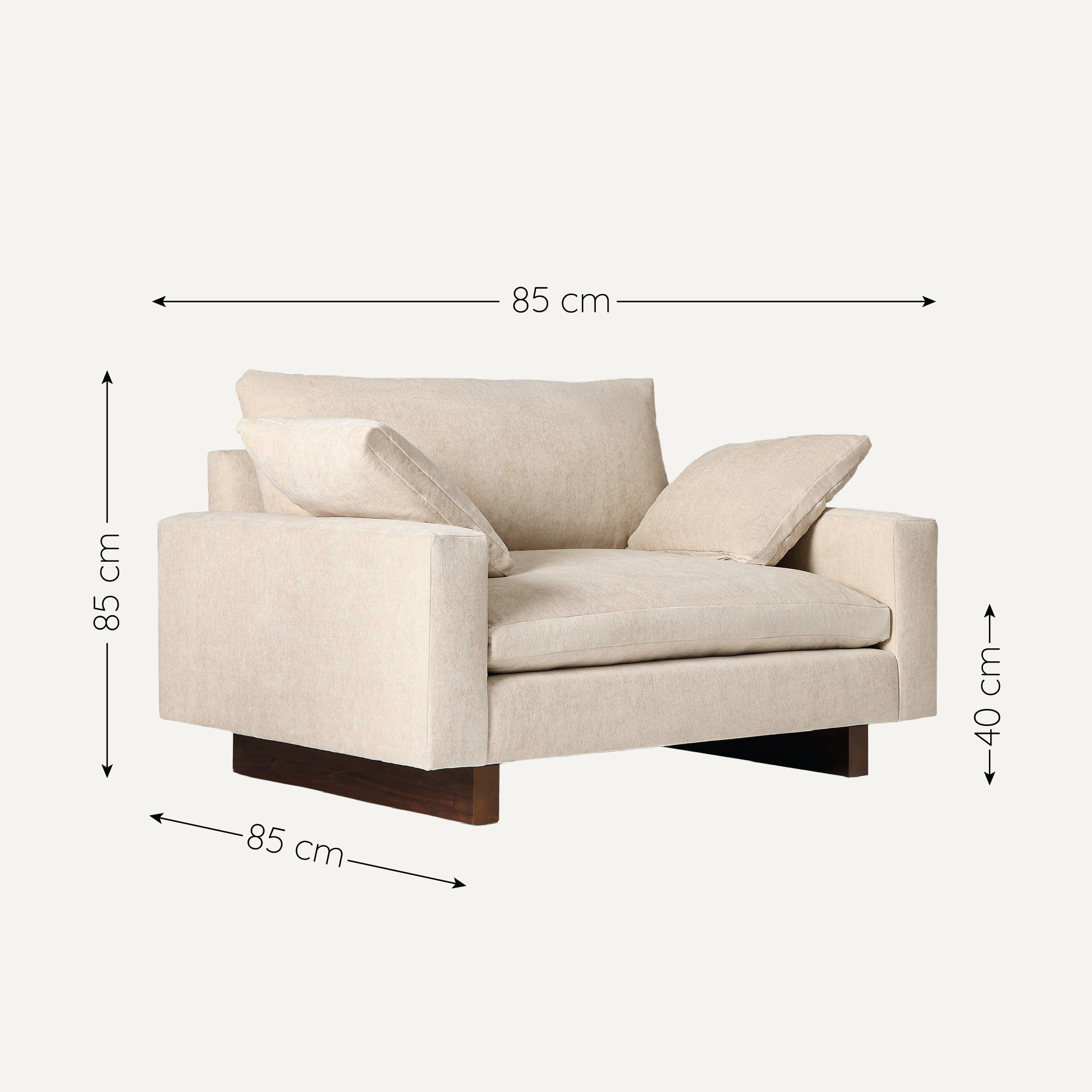 Sofa đơn Harmony – mang đến cảm giác thư giãn an yên với đệm ngồi êm, lưng tựa cao và gối ôm mềm mại. Thiết kế tối giản, chân ghế vững vàng dễ phối với nhiều phong cách nội thất. Vệ sinh dễ dàng, bền đẹp theo thời gian, là lựa chọn lý tưởng cho không gian sống hiện đại và hài hòa