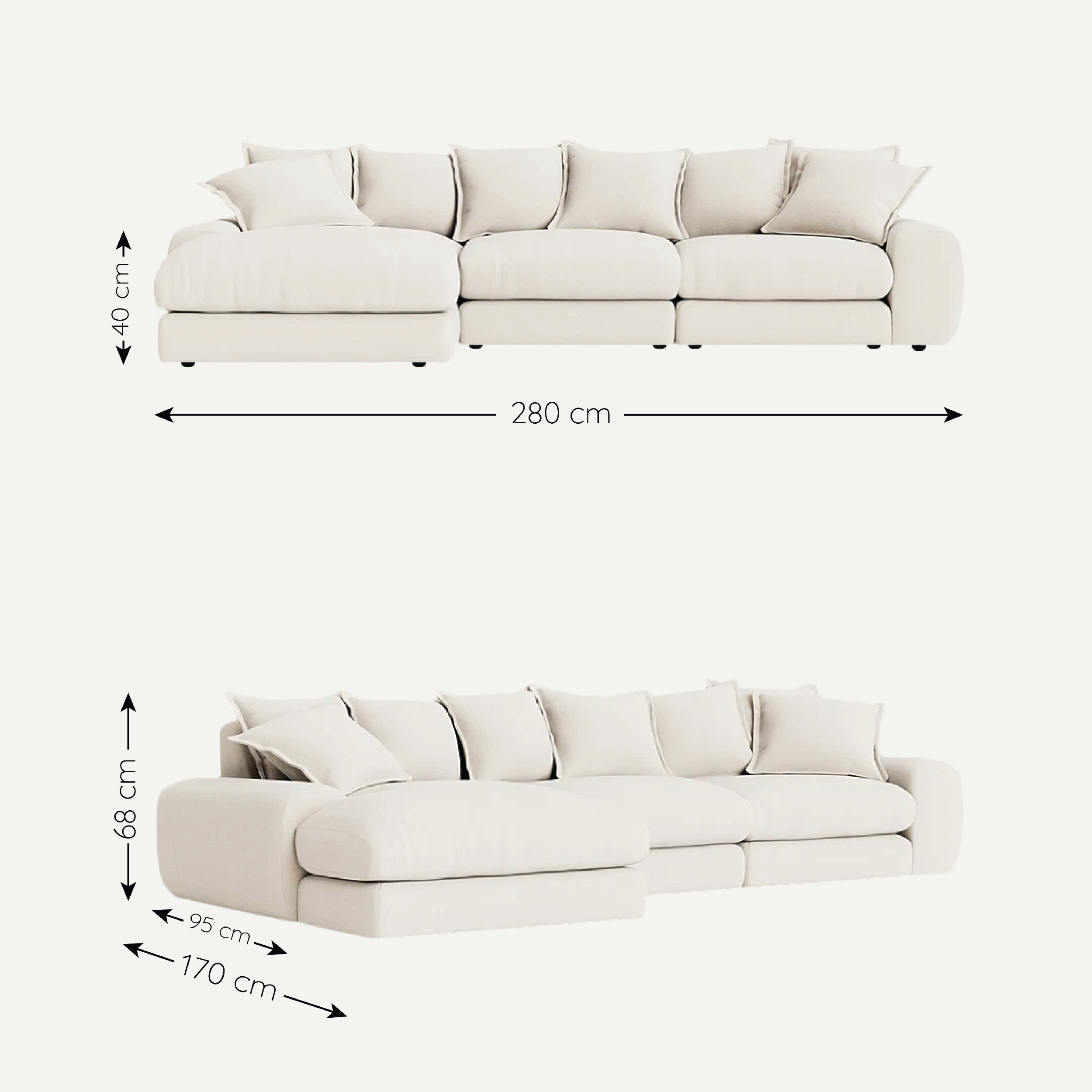 Sofa góc Boong – lựa chọn hiện đại cho không gian sống rộng mở. Đệm dày êm ái, gối tựa phồng lớn ôm trọn tư thế, mang đến sự thoải mái tối đa khi sum họp hay thư giãn. Thiết kế tay vịn bo tròn mềm mại, gối linh hoạt dễ tùy biến.