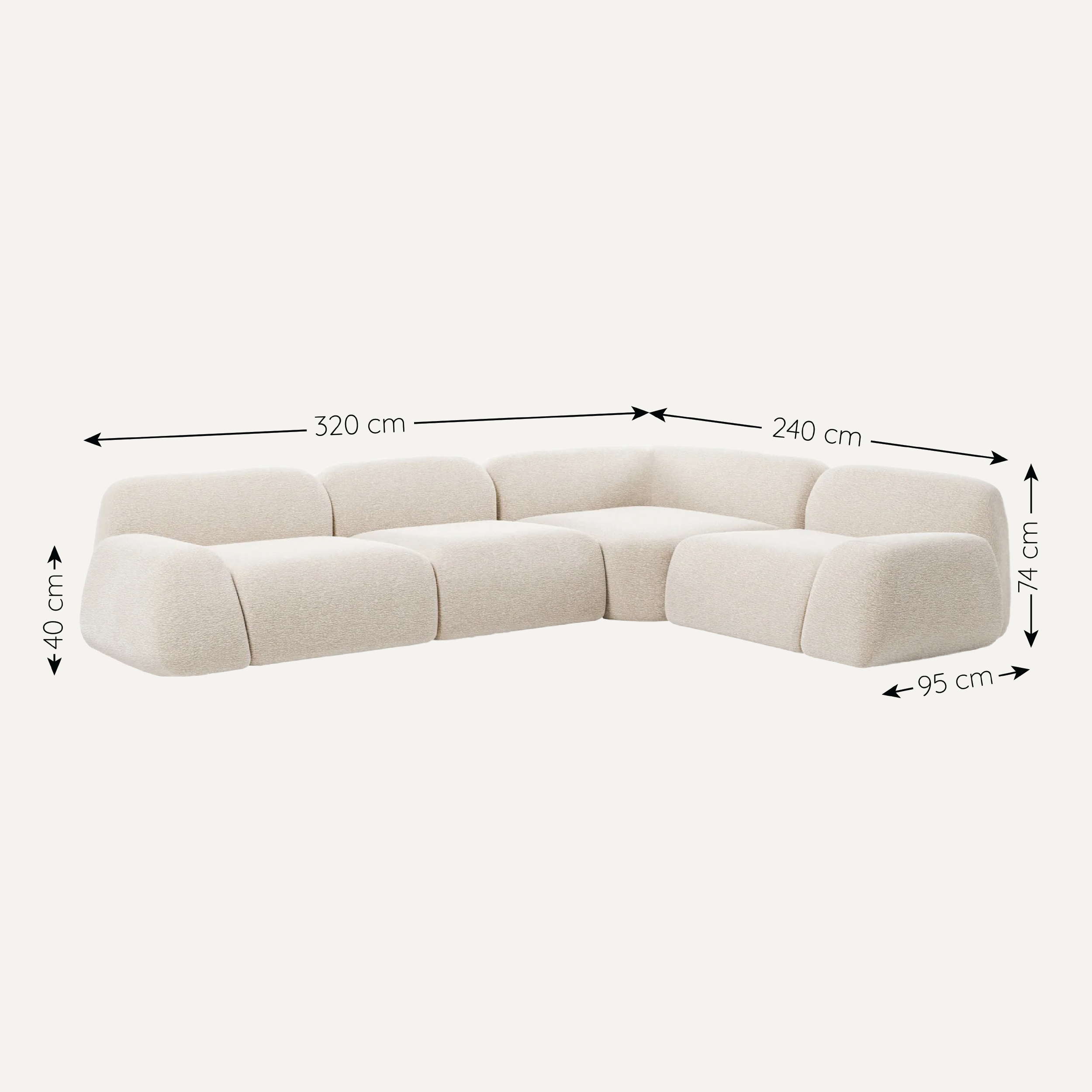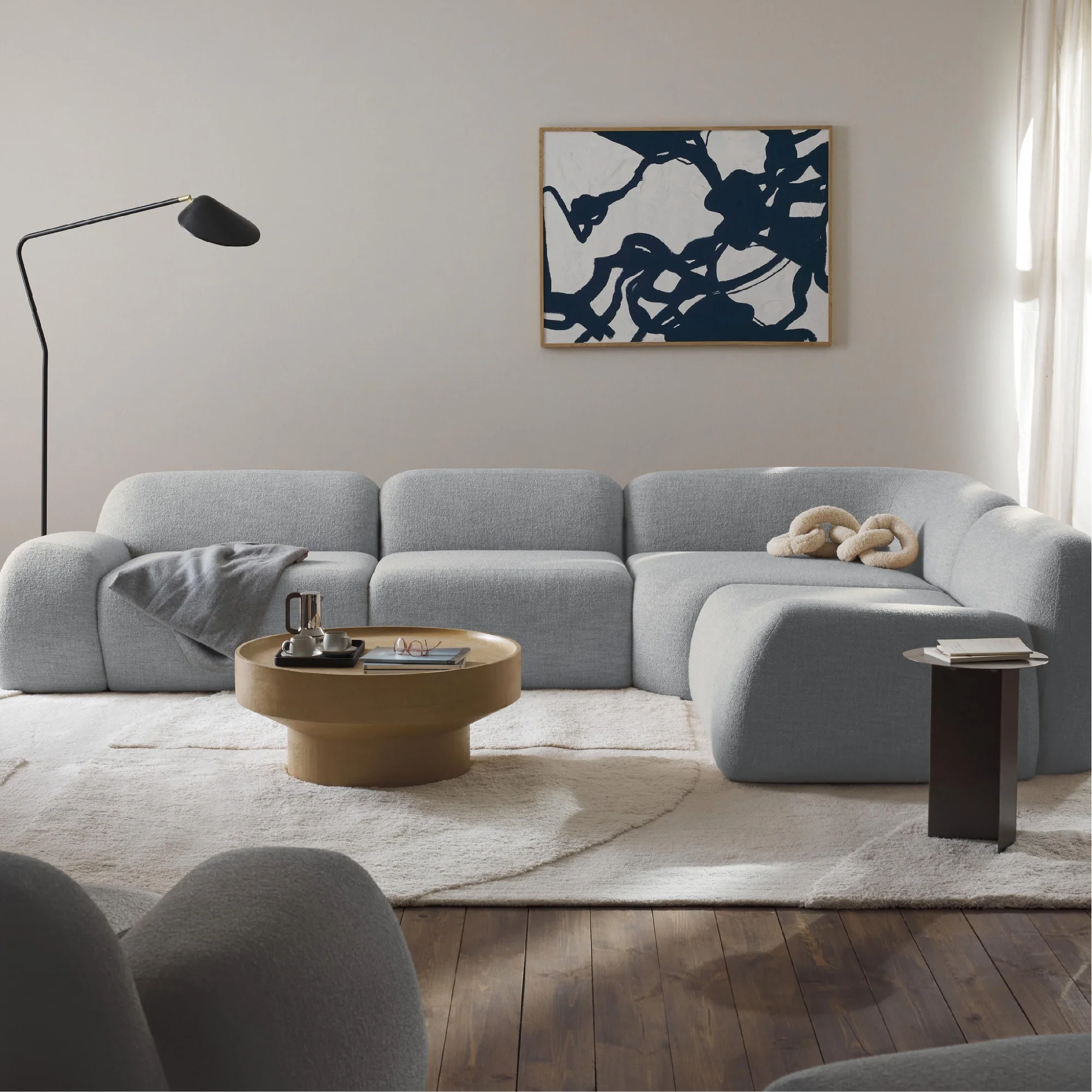 Sofa góc Cloud – lựa chọn hoàn hảo cho phòng khách hiện đại. Đệm phồng liền mạch, tay vịn và tựa lưng bo cong mềm mại mang lại cảm giác êm ái, nâng đỡ trọn vẹn. Các khối ghép linh hoạt dễ dàng tuỳ chỉnh theo diện tích và sở thích, vừa tiện nghi vừa tạo điểm nhấn đẳng cấp cho không gian sống.