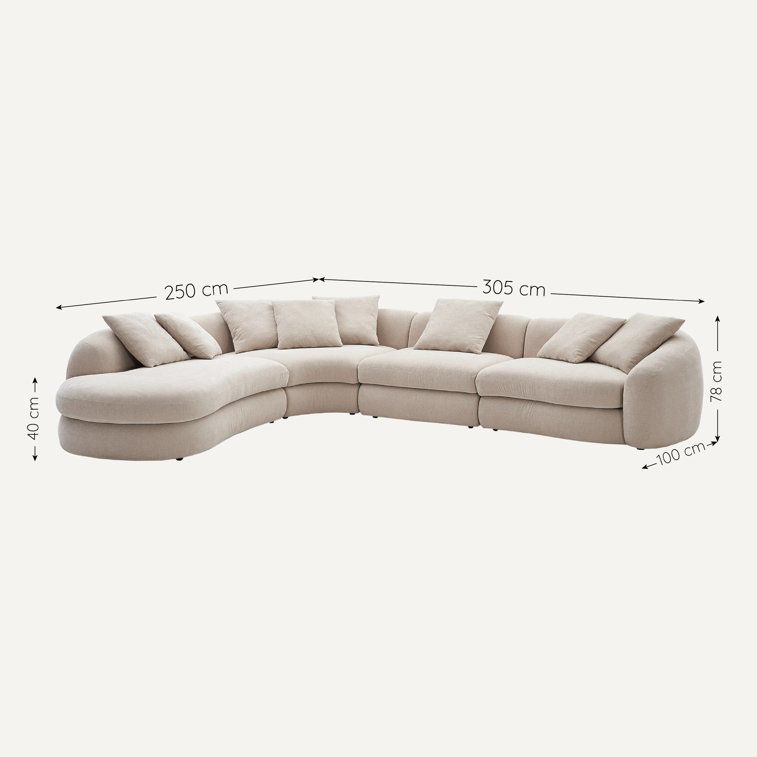 Sofa góc Fable – lựa chọn hiện đại cho không gian thư giãn rộng rãi. Đệm phồng lớn và đường nét uốn lượn mềm mại mang lại cảm giác ngồi – nằm nhẹ nhàng, êm ái. Dãy gối tựa linh hoạt dễ điều chỉnh, phù hợp nhiều kiểu sum họp hay nghỉ ngơi riêng tư. Thiết kế modul liền mạch, đệm và gối có thể tháo rời tiện vệ sinh, giữ sofa luôn bền đẹp theo thời gian.