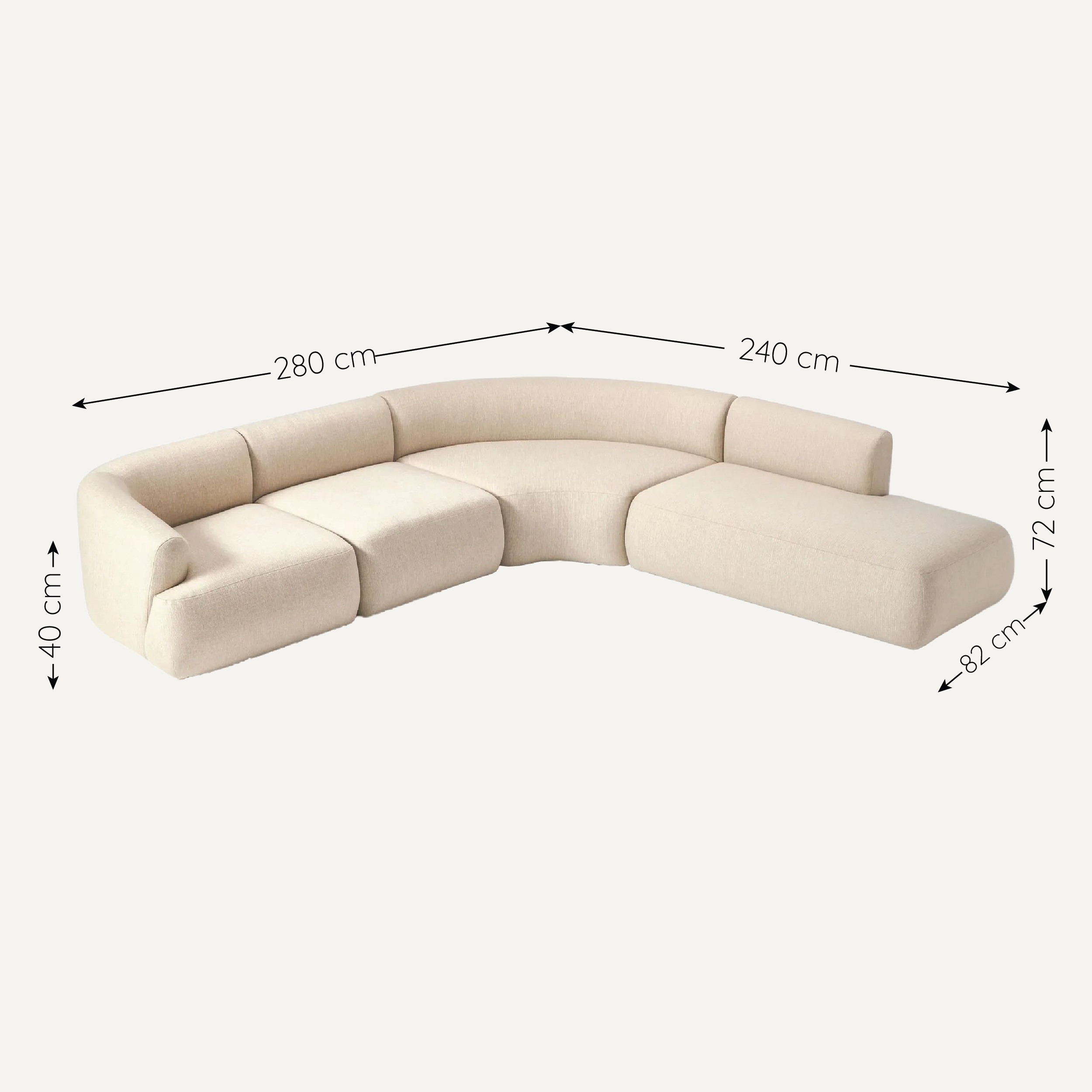 Sofa góc Mood 4 modular mang phong cách trẻ trung, thoải mái với đệm ngồi phồng lớn và mặt ghế uốn lượn liền mạch, nâng đỡ êm ái trong mọi tư thế. Các module rời linh hoạt, dễ lắp đặt và sắp xếp, tối ưu diện tích theo nhu cầu. Thiết kế bo cong tối giản, tay vịn hài hòa giúp sofa trở thành điểm nhấn tiện nghi cho không gian sum họp hiện đại.